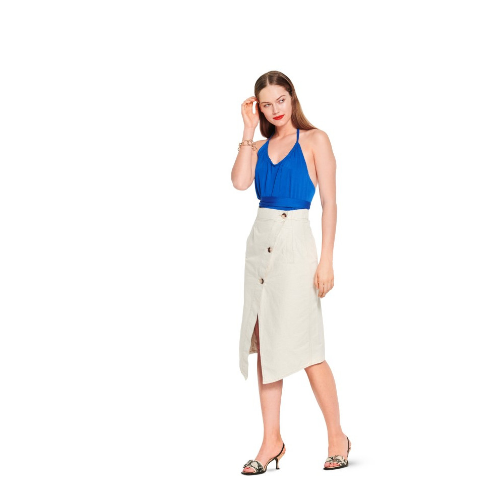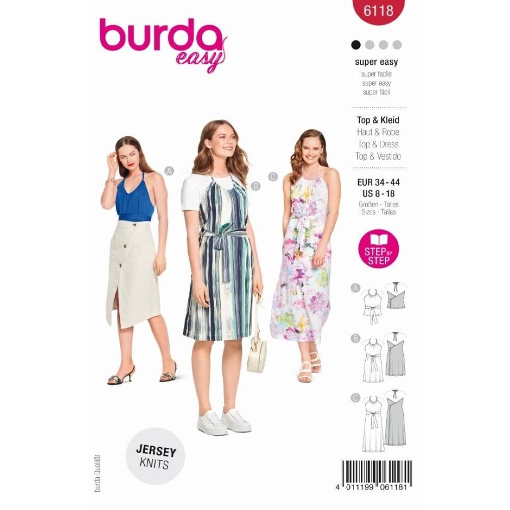 Střih Burda číslo 6118 zavinovací šaty za krk, zavinovací top