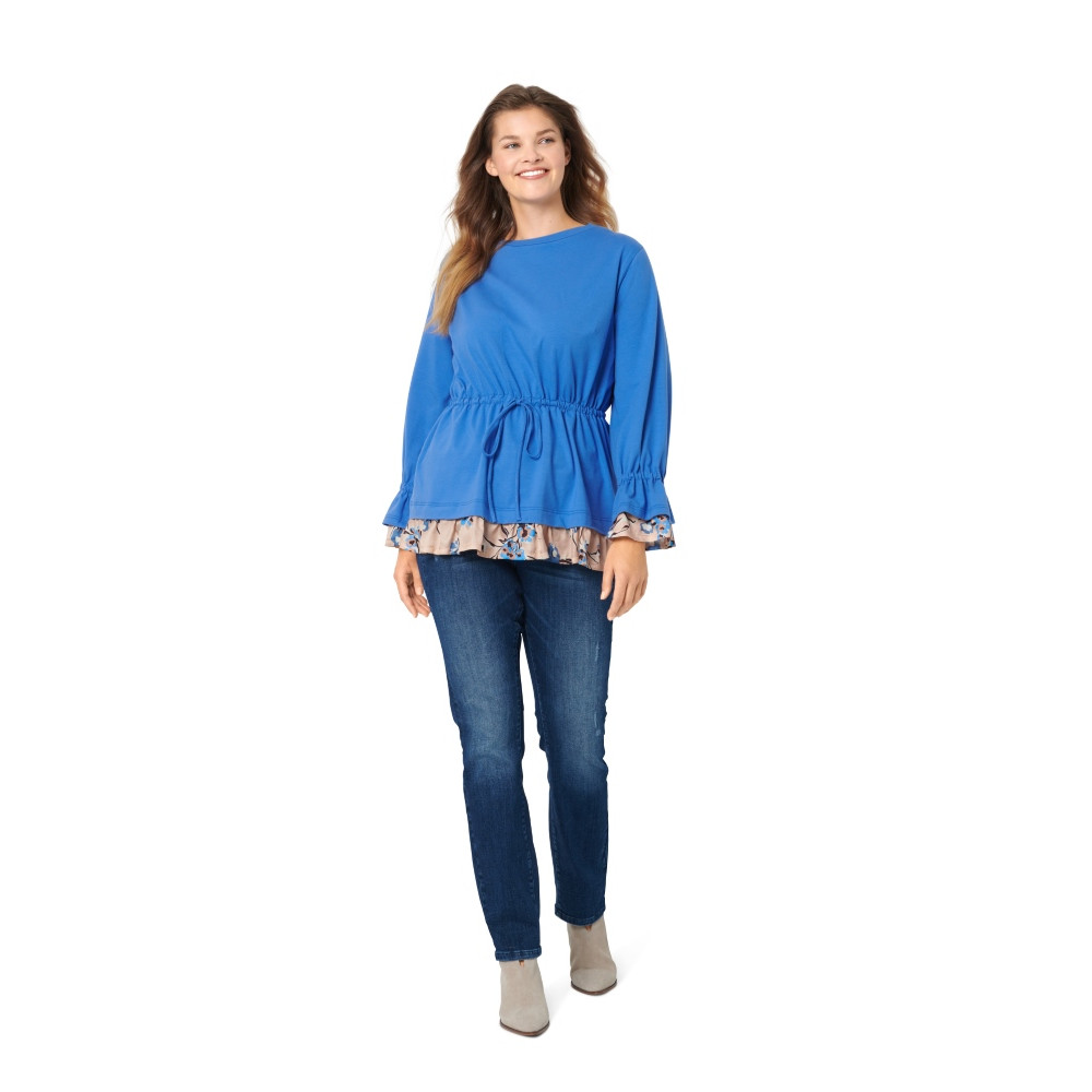 Střih ve velikostech EUR 44-54, úroveň obtížnosti šití: 2 lehká info, doporučené látky: teplákovina, žerzej