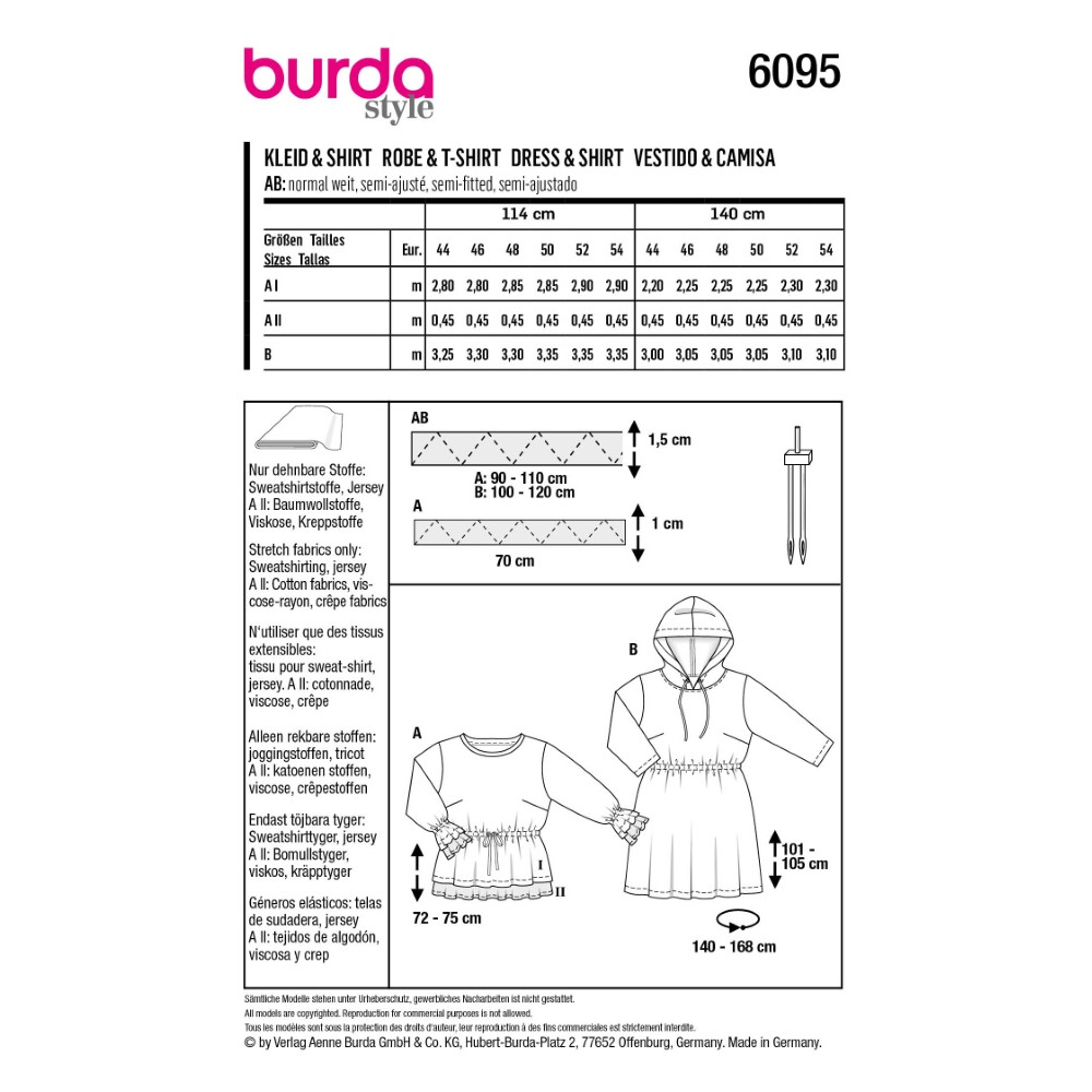 Střih Burda 6095, návod k šití: mikinové šaty pro plnoštíhlé, mikina