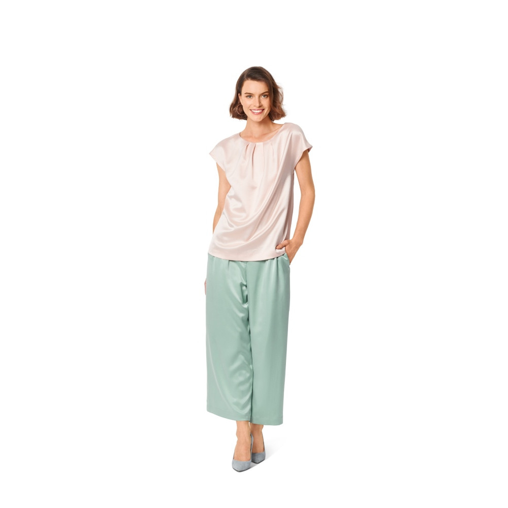 Střih ve velikostech EUR 34-44, úroveň obtížnosti šití: 2 lehká info, doporučené látky: slabší bavlna, viskóza, krep, hedvábí