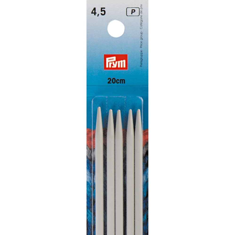 Lehké hliníkové oboustranné pletací jehlice 4.50 mm v délce 20 cm v perlově šedé