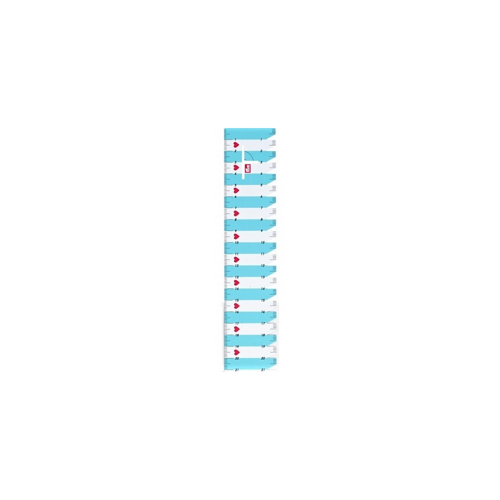 Praktické ruční měřidlo z ohebného plastu vhodné k šicímu stroji. Oboustranná absolutně precizní 21 cm stupnice se zářezy a značení pro úhel 90° umožňují rychlé a přesné měření a značení.
