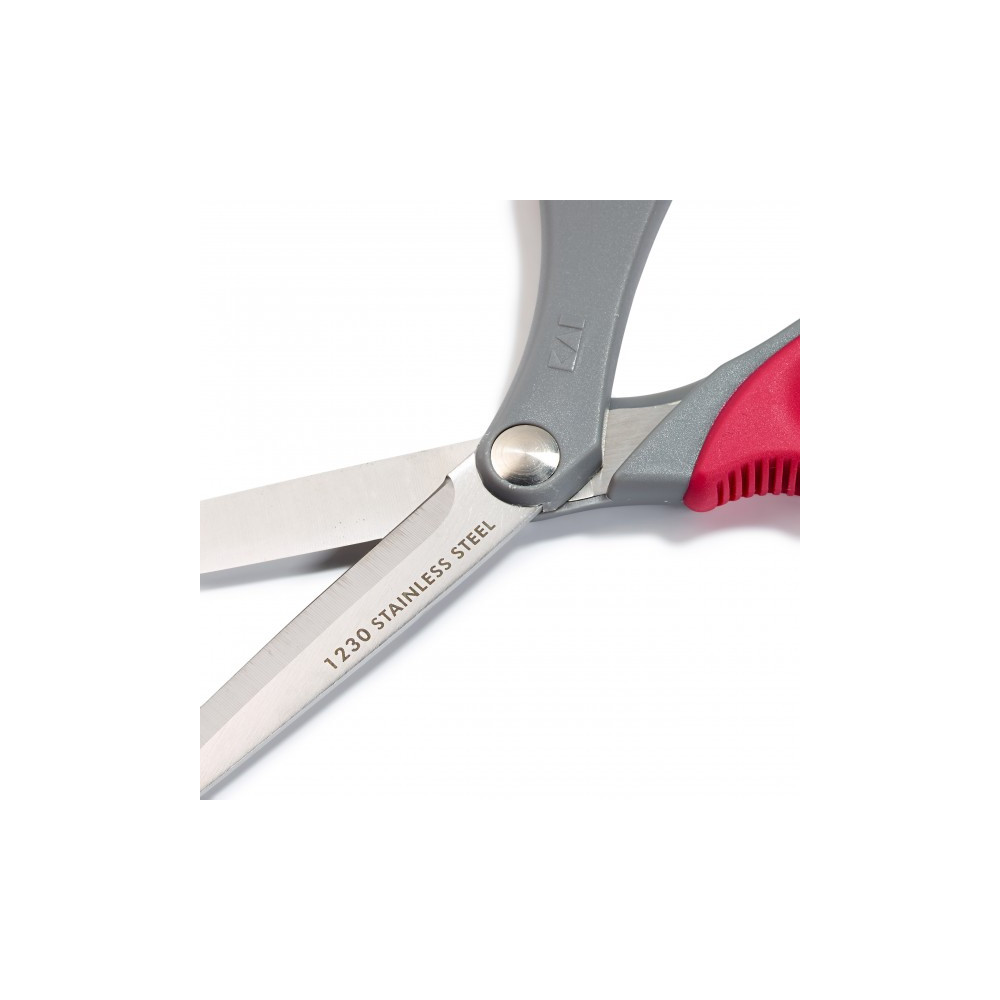 Velké krejčovské nůžky (23 cm) od japonské firmy KAI s čepelemi z vysoce kvalitní nerezové oceli odolnými vůči korozi, které umožňují stříhání s milimetrovou přesností. Komfortní plastové rukojeti se změkčenými oky brání tlaku na prsty při stříhání. Nůžky jsou vhodné na větší precizní stříhání při hobby šití.