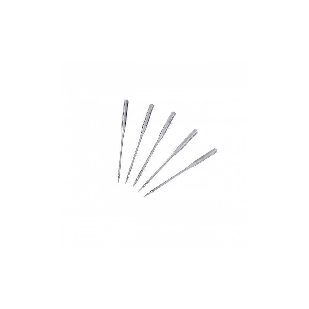 Vysoce kvalitní univerzální jehly jsou vhodné prakticky pro všechny přírodní i syntetické látky a běžné šicí stroje. Díky lehce zaoblené špičce snadno procházejí látkou. Balení obsahuje 5 jehel ve vel. 70-100 130/705.