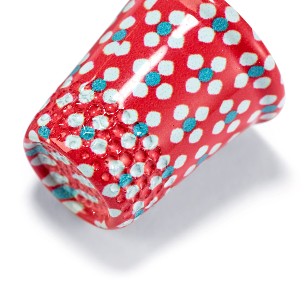Kovový náprstek s barevným květinovým motivem a protiskluzovým okrajem