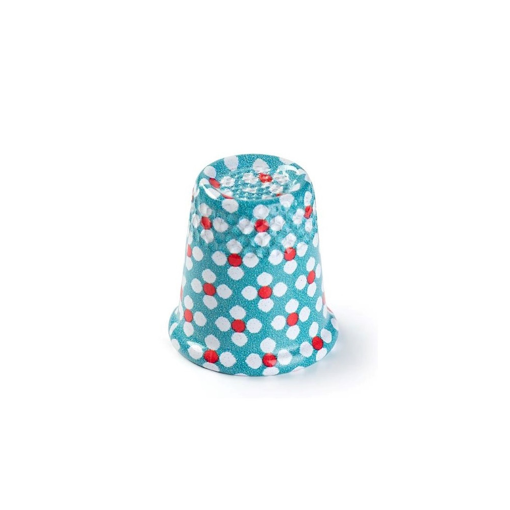Kovový náprstek s barevným květinovým motivem a protiskluzovým okrajem