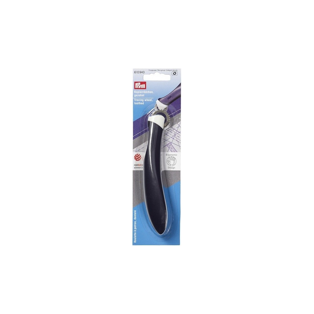 Kopírovací rádlo s pohodlnou ergonomicky tvarovanou rukojetí se používá k vykopírování linií střihu na papír nebo látku přes kopírovací papír. Kolečko se zoubky vykresluje přerušovanou - tečkovanou linii.
