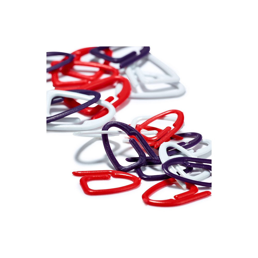 Malé plastové klipy pro značení a tím snadné počítání ok a řádků na pletenině