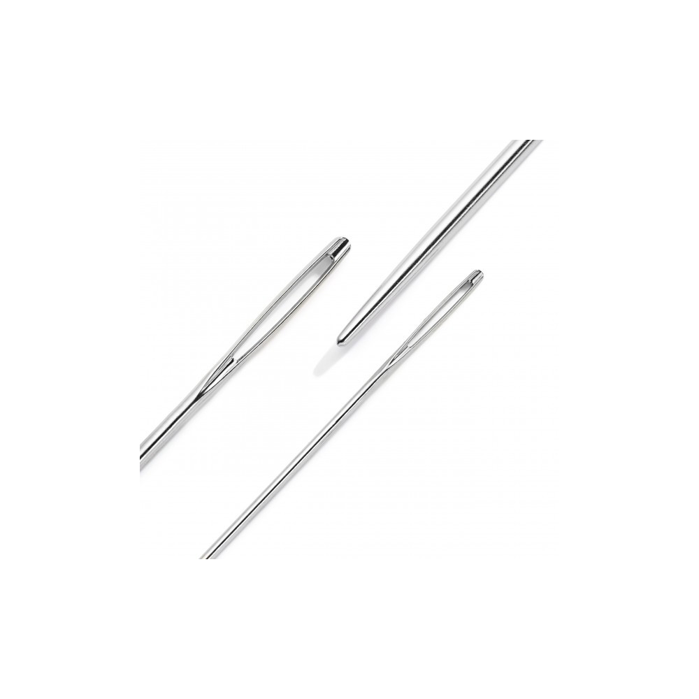 Speciální jehly na vlnu s tupou špičkou a velkým ouškem ve třech délkách.