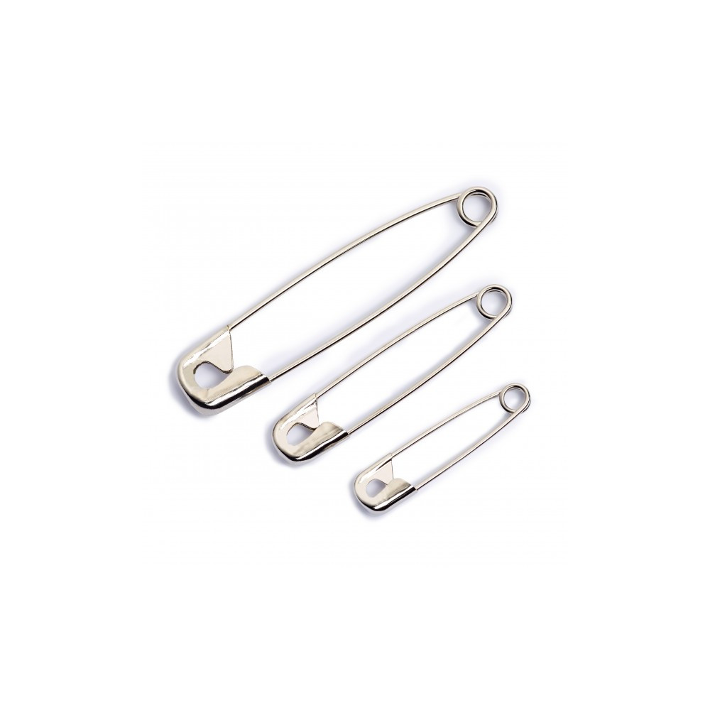 Ocelové spínací špendlíky ve stříbrné barvě ve třech velikostech 27/38/50 mm