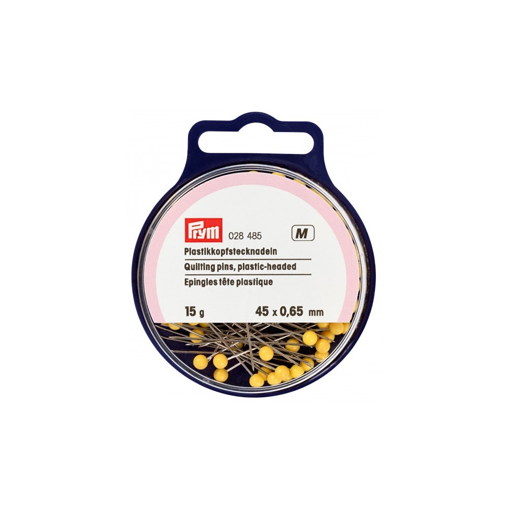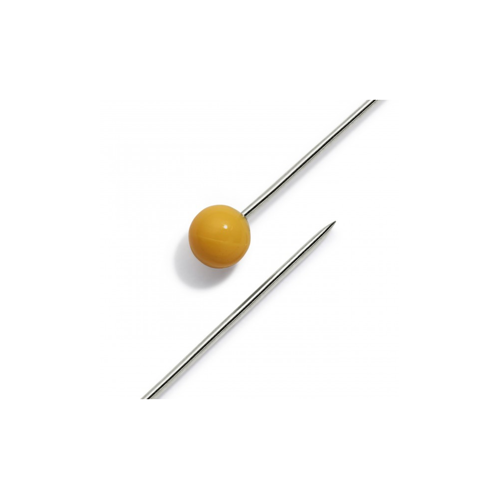 Odolné špendlíky se žlutou perličkovou hlavičkou v plastové dóze