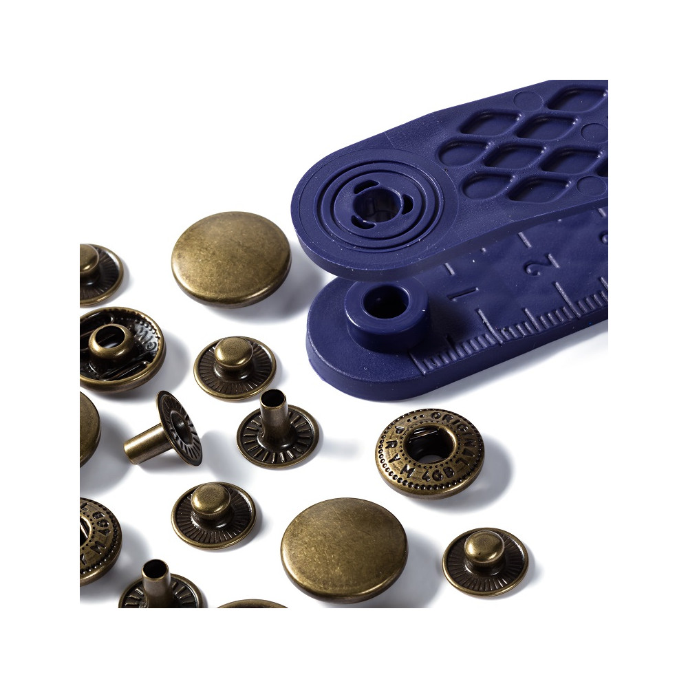 Stiskací knoflíky střední síly zapínání vhodné na bundy, větrovky, zimní bundy, oděvy z jemné kůže, sukně apod. Speciálním prvkem je bronzová pružinka, která zajišťuje hladké plynulé zapínání a rozepínání. Aplikují se bez šití pomocí speciálního "narážeče", který je spolu s návodem součástí balení. Případně je lze aplikovat také pomocí kleští Vario.
