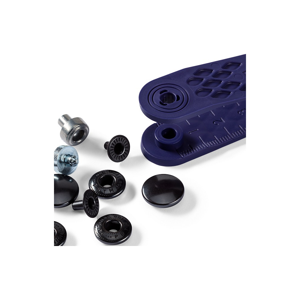 Stiskací knoflíky střední síly zapínání vhodné na bundy, větrovky, zimní bundy, oděvy z jemné kůže, sukně apod. Speciálním prvkem je bronzová pružinka, která zajišťuje hladké plynulé zapínání a rozepínání. Aplikují se bez šití pomocí speciálního "narážeče", který je spolu s návodem součástí balení. Případně je lze aplikovat také pomocí kleští Vario.