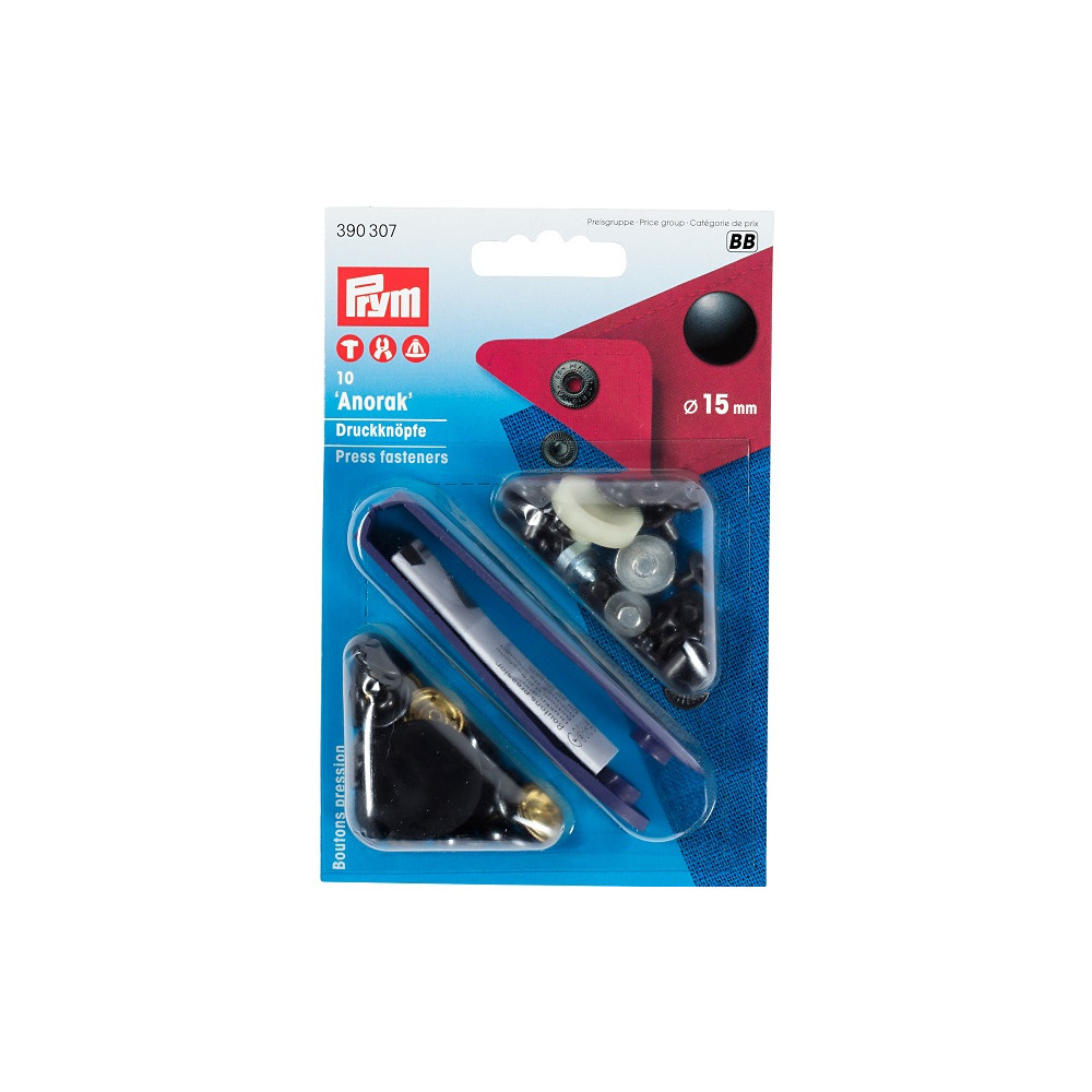 Stiskací knoflíky černé, 15 mm (10 ks) PRYM