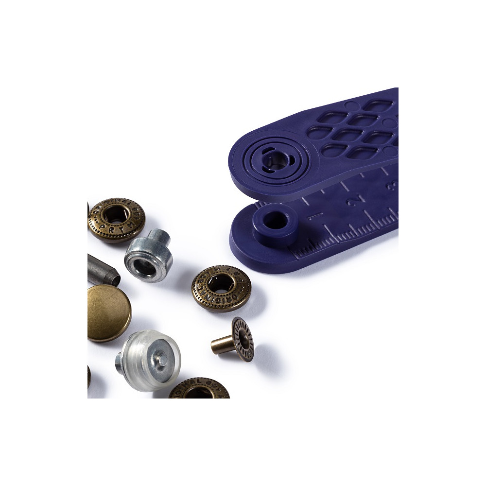 Stiskací knoflíky střední síly zapínání vhodné na bundy, větrovky, zimní bundy, oděvy z jemné kůže, sukně apod. Speciálním prvkem je bronzová pružinka, která zajišťuje hladké plynulé zapínání a rozepínání. Aplikují se bez šití pomocí speciálního "narážeče", který je spolu s návodem součástí balení. Případně je lze aplikovat také pomocí kleští Vario.