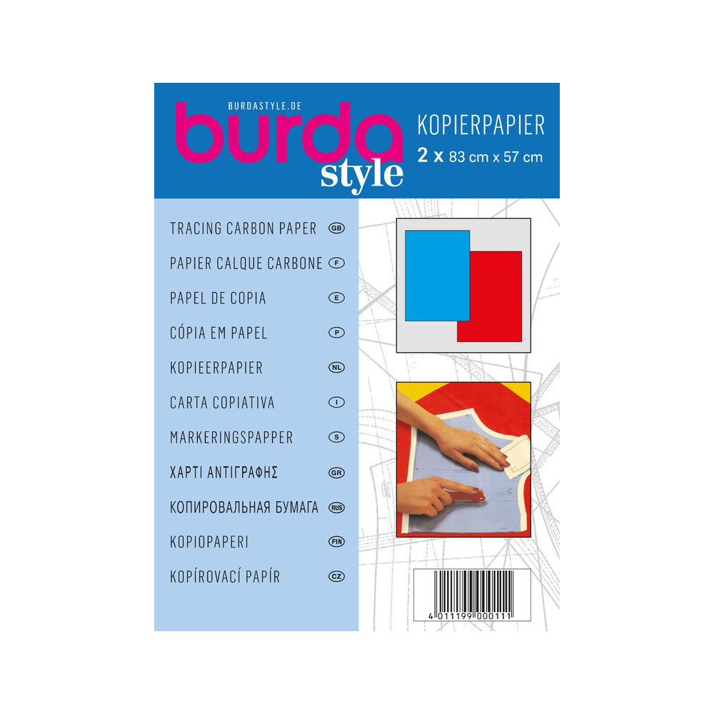 Kopírovací papír se používá k vykopírování linií střihu na rub látky pomocí kopírovacího rádla. V modré a červené barvě - vhodný pro tmavší látky. Nevhodný pro průsvitné látky a pro tkaniny s hrubší strukturou.