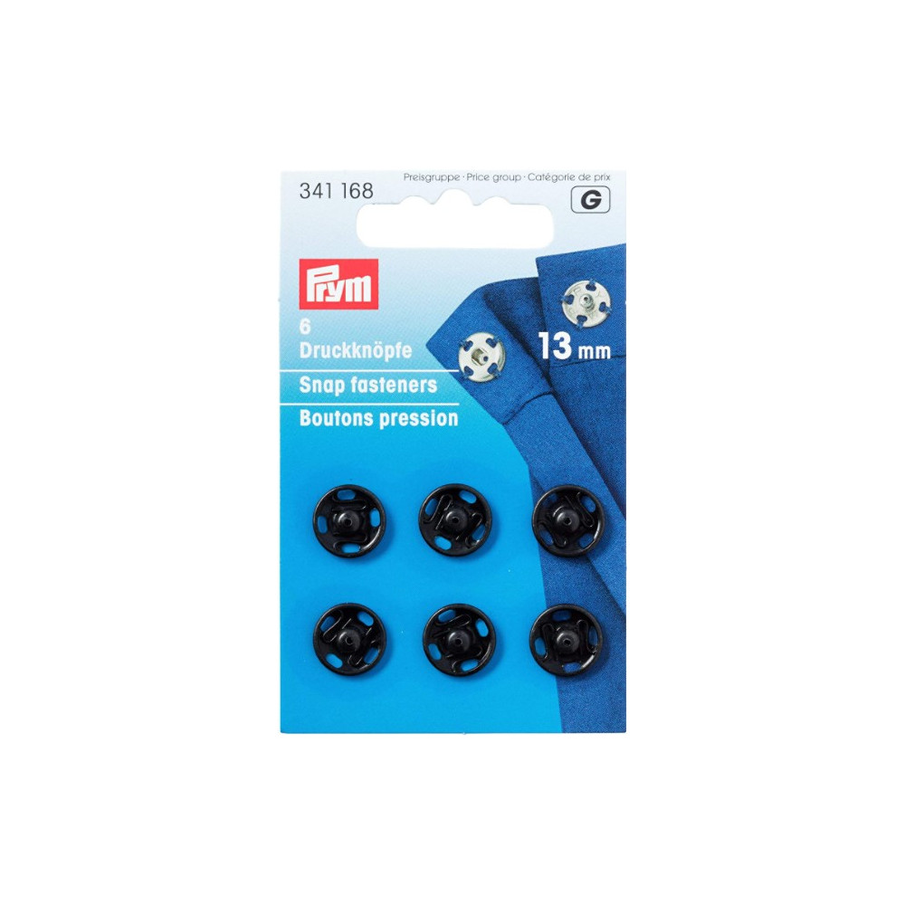 Patentky kulaté černé, 13 mm (6 ks) PRYM