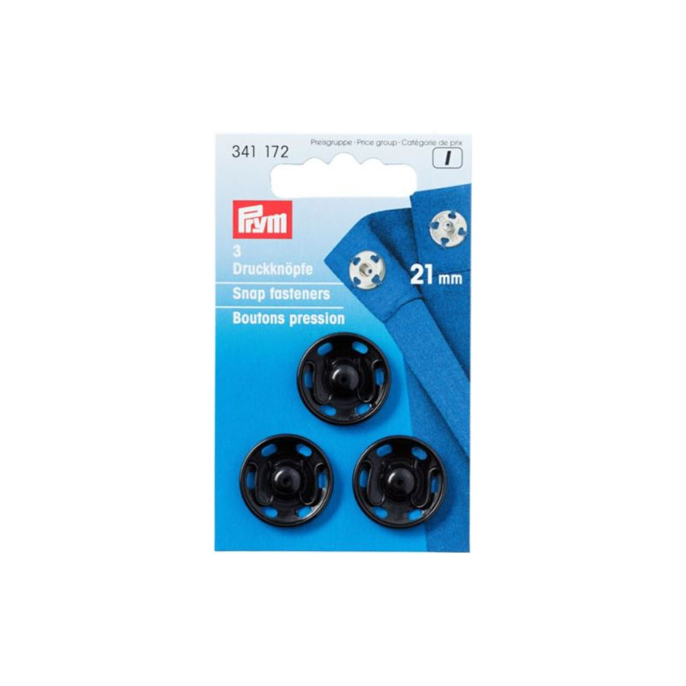 Patentky kulaté černé, 21 mm (3 ks) PRYM