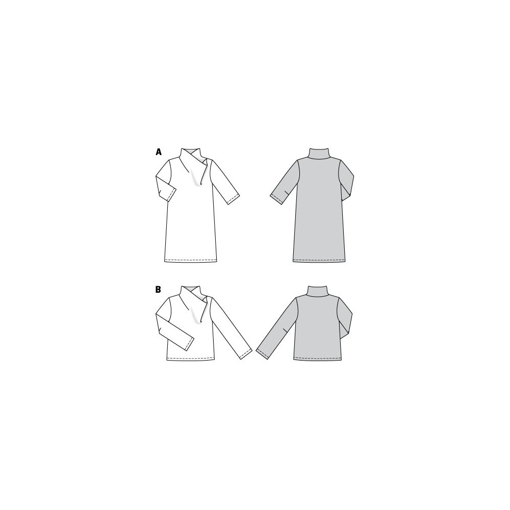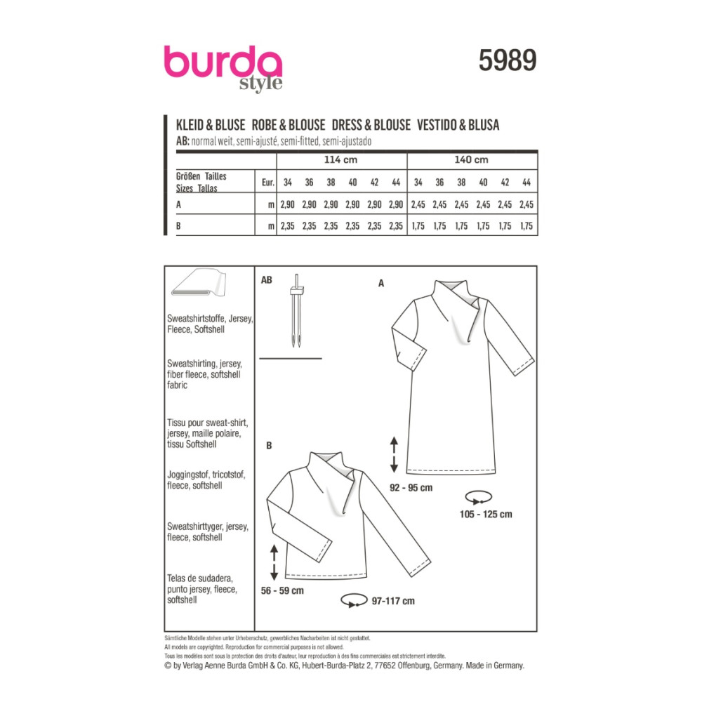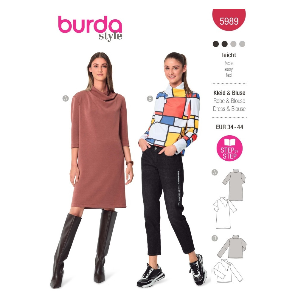 Střih Burda 5989, návod k šití: tričko, šaty s rolákovým límcem, rolák