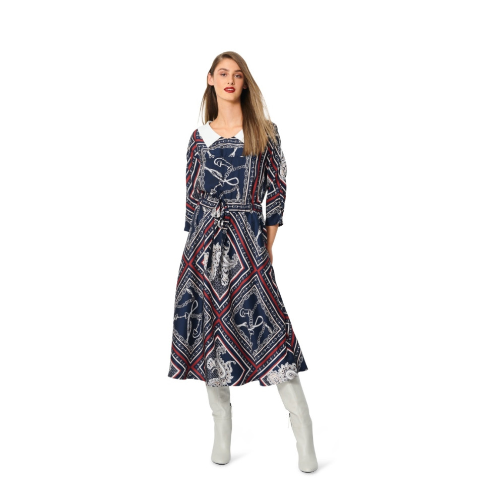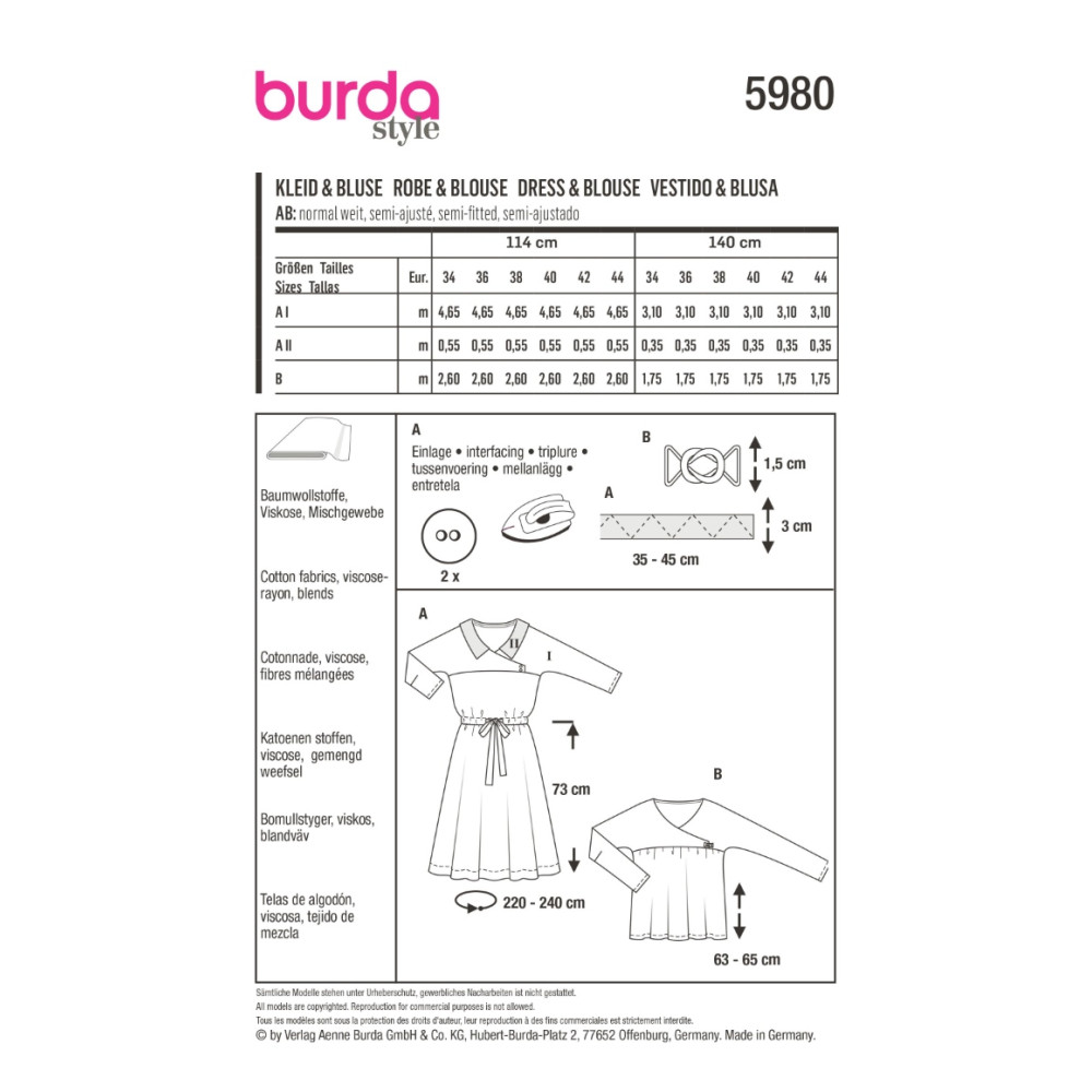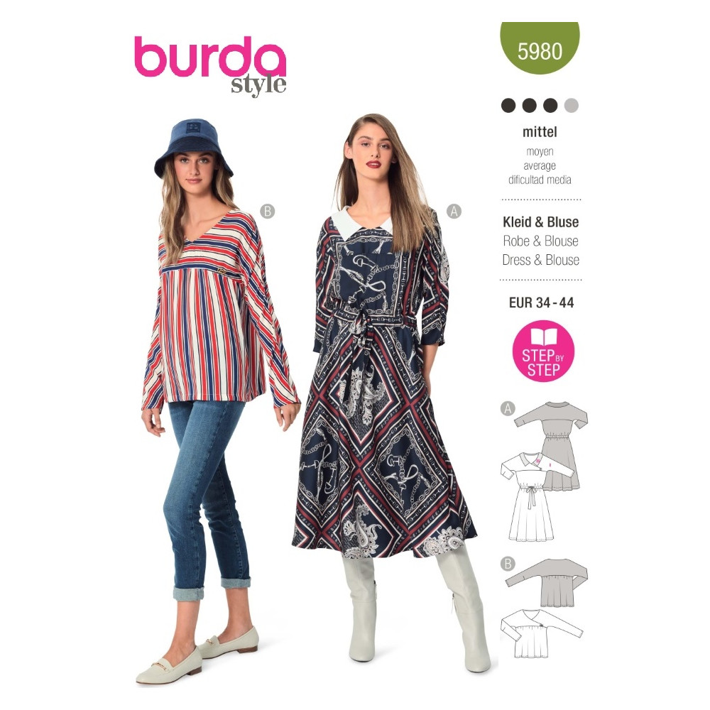 Střih Burda 5980, návod k šití: šaty s límečkem, volná halenka