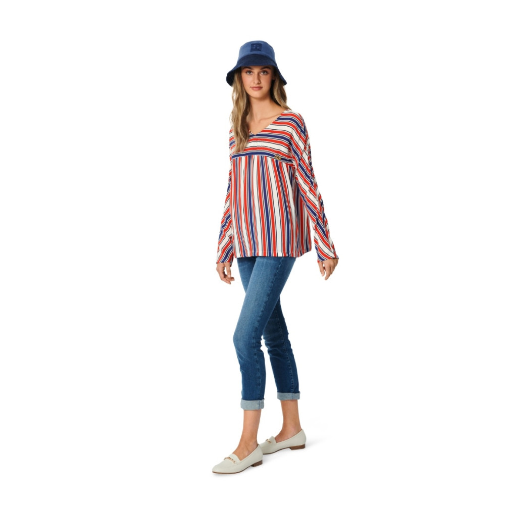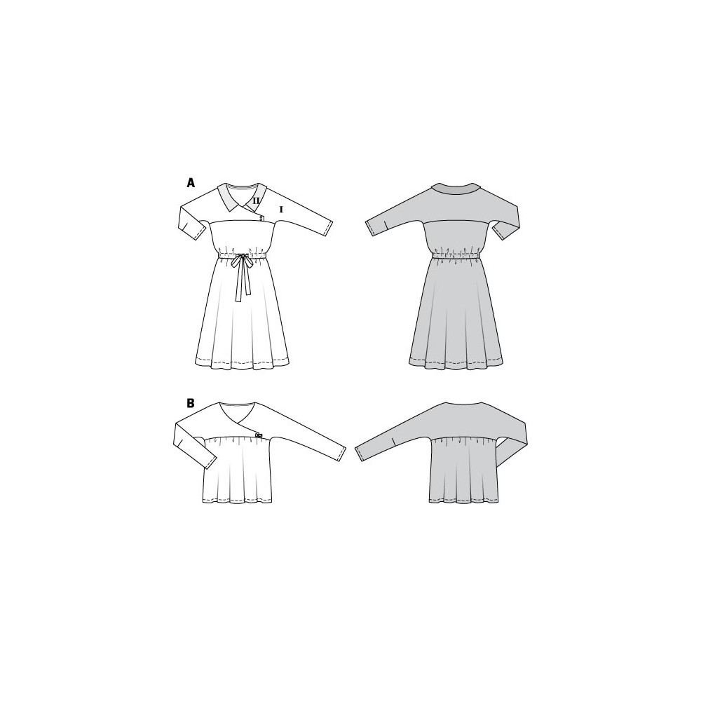 Střih ve velikostech EUR 34-44, úroveň obtížnosti šití: 3 střední info, doporučené látky: bavlna, viskóza, směsové látky