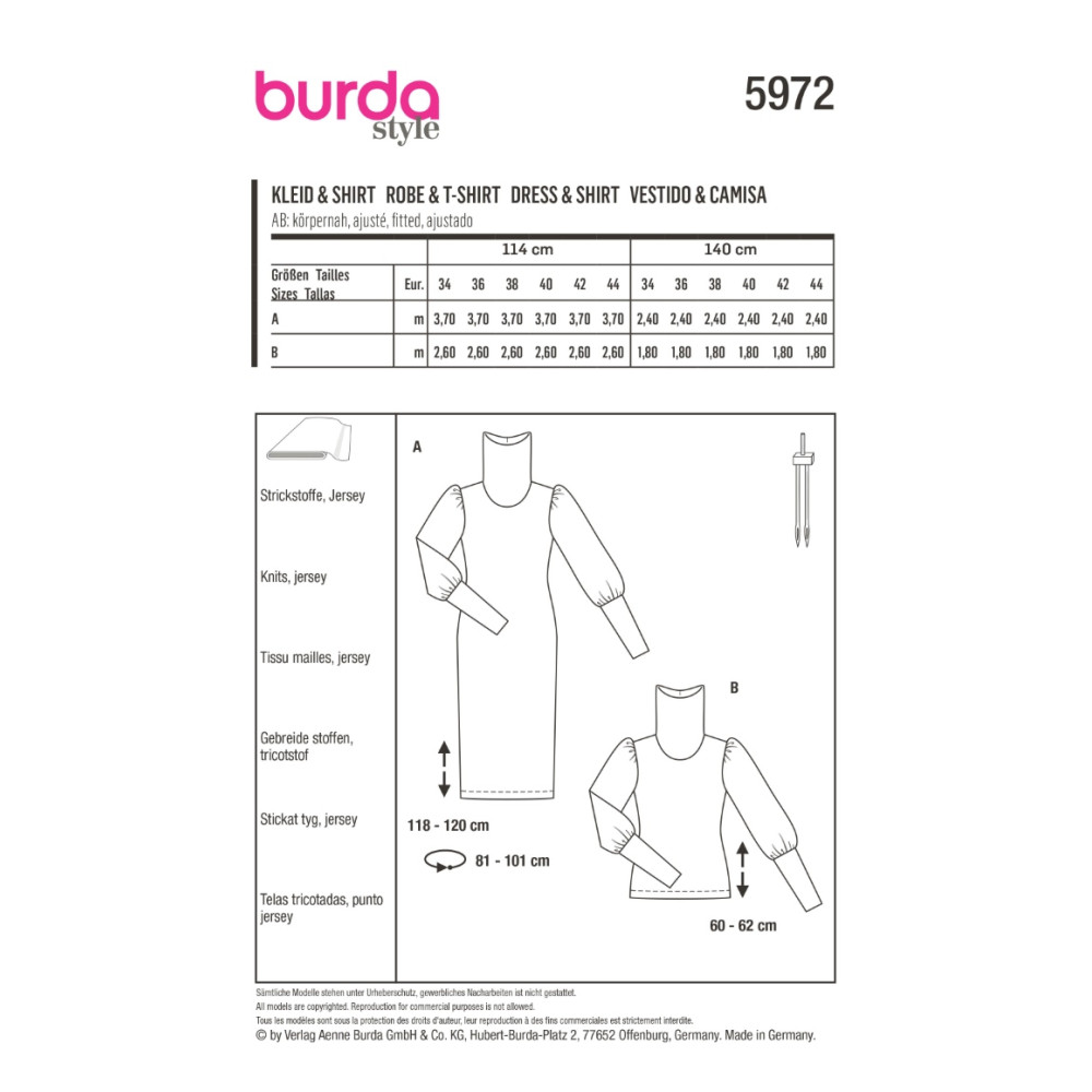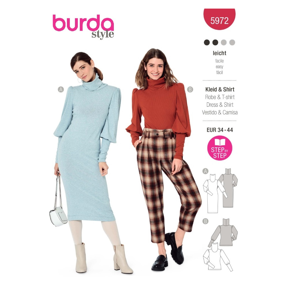 Střih Burda 5972, návod k šití: svetrové šaty s rolákem, rolák