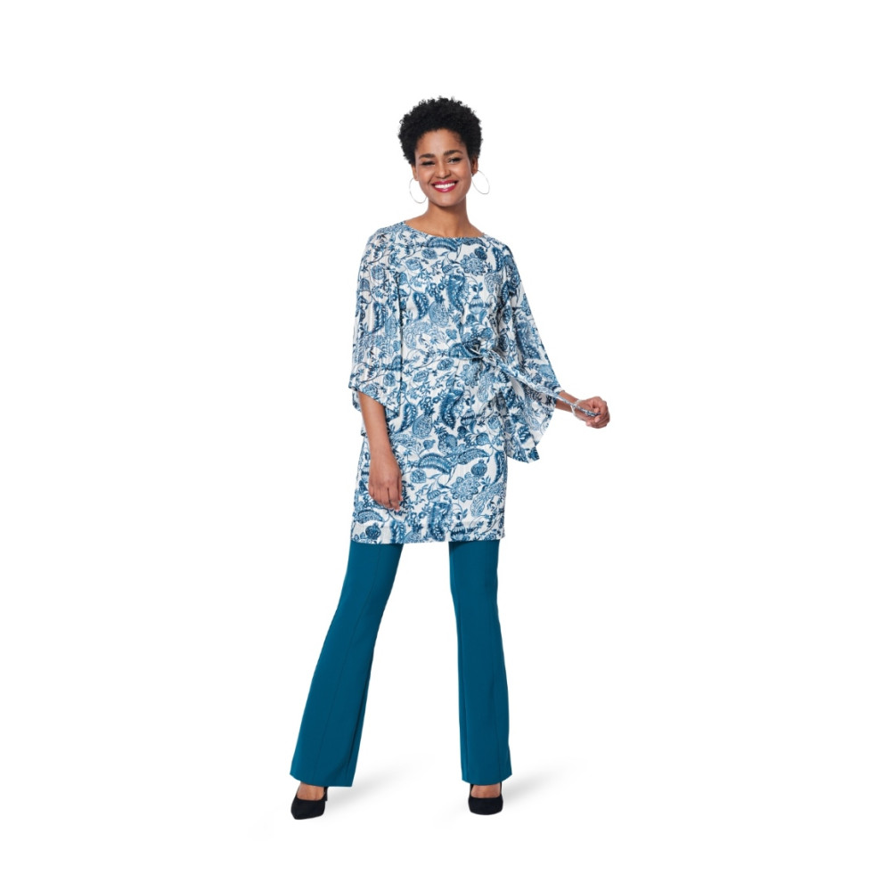 Střih ve velikostech EUR 34-44, úroveň obtížnosti šití: 3 střední info, doporučené látky: krepové látky, viskóza, hedvábí, směsové látky