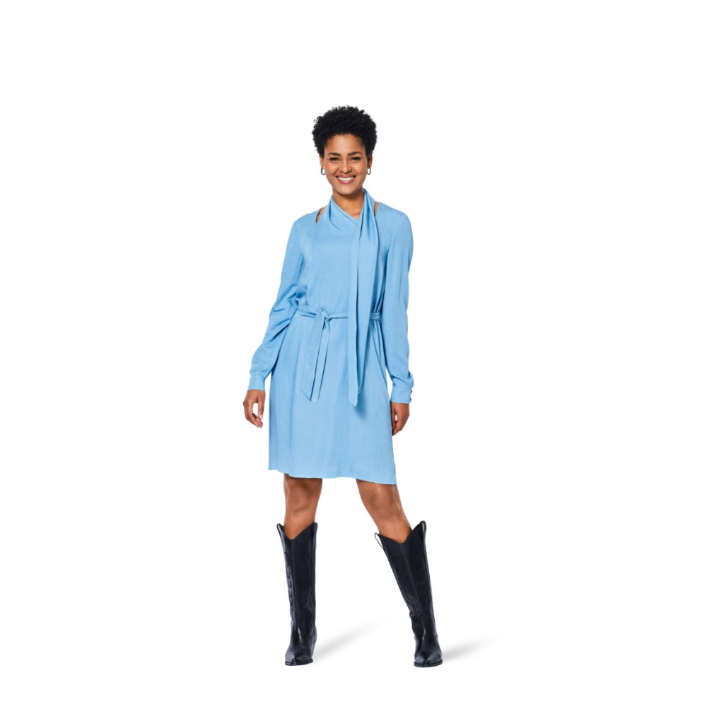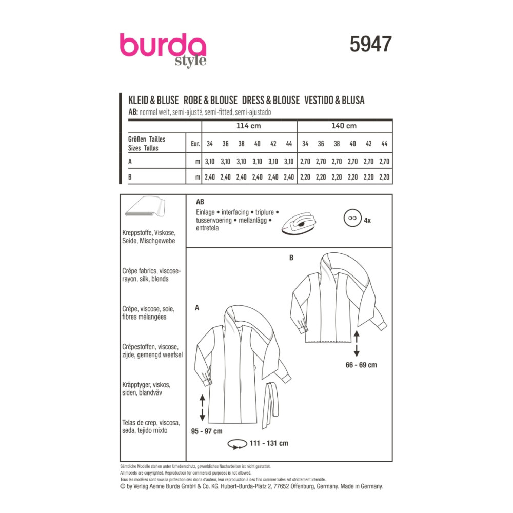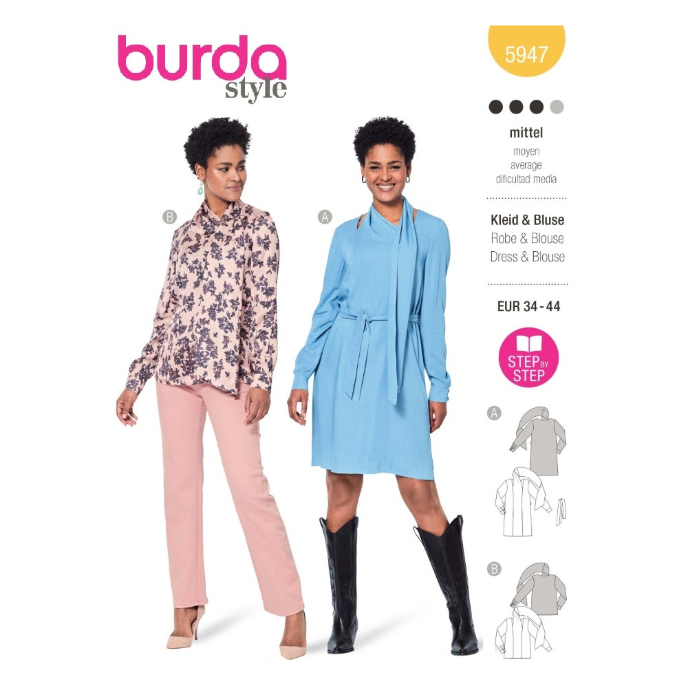 Střih Burda 5947, návod k šití: šaty se šálovým límcem, halenka