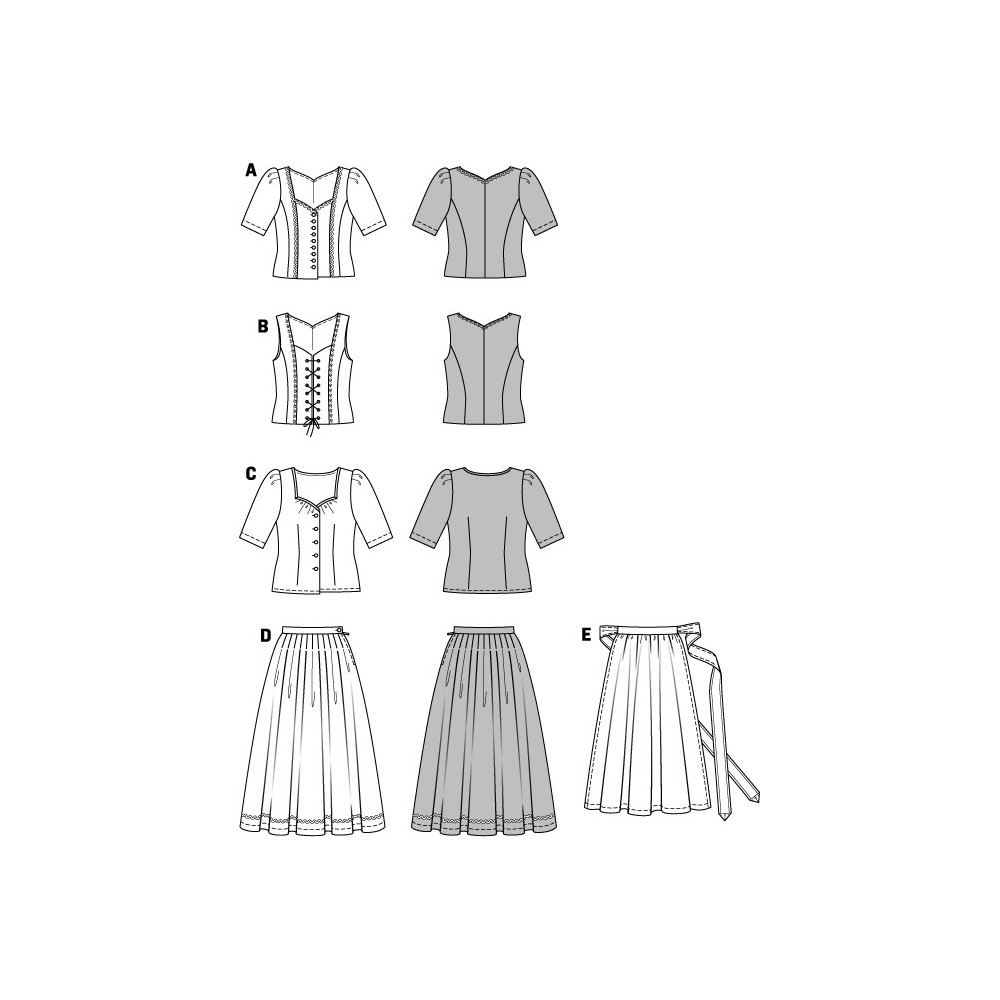 Střih Burda číslo 7870 krojová sukně, krojová zástěrka, krojová halenka