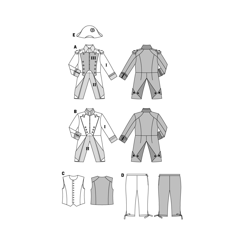 Střih Burda na pánský historický kostým - vojenský kabátec, vesta, kalhoty, klobouk.