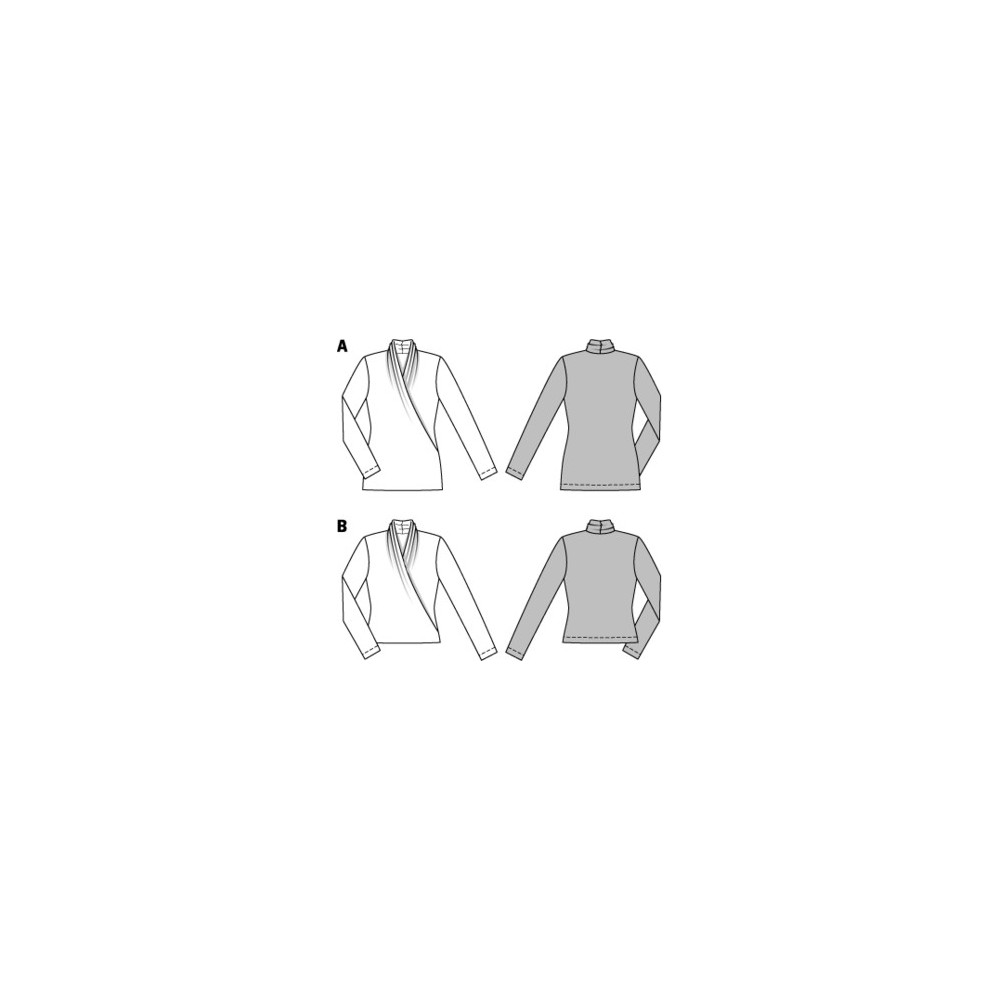 Střih Burda na halenku se zavinovacím efektem ve dvou délkách a šálovým límcem.