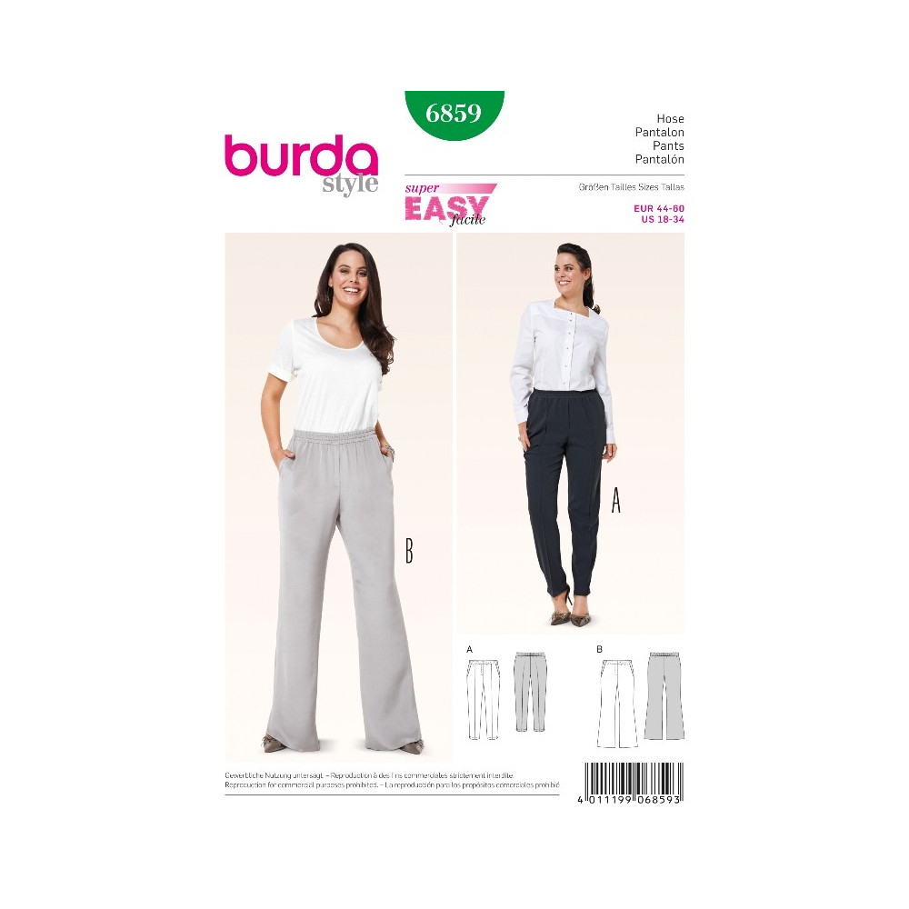 Střih Burda číslo 6859 kalhoty s gumou v pase pro plnoštíhlé