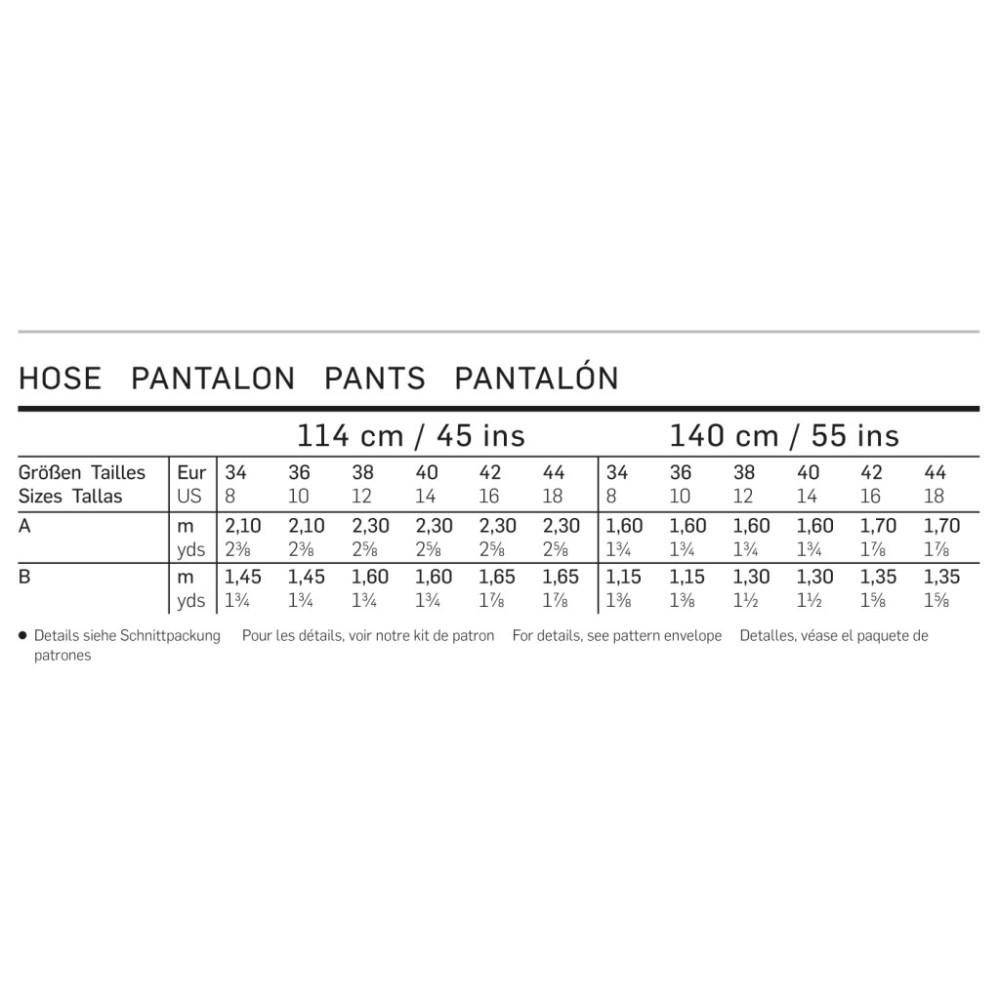 Vezměte prosím na vědomí, že střihy Burda style používají mezinárodní míry velikostí oblečení (EUR), které se mohou lišit od těch, které běžně nosíte. Pro určení správné velikosti střihu doporučujeme důkladné přeměření podle tabulky velikostí a měr Burda style. Vlastnoručně ušité oblečení by mělo nejen skvěle vypadat, ale především perfektně sedět!