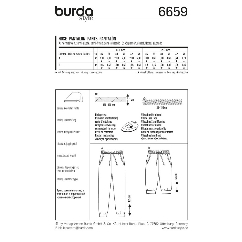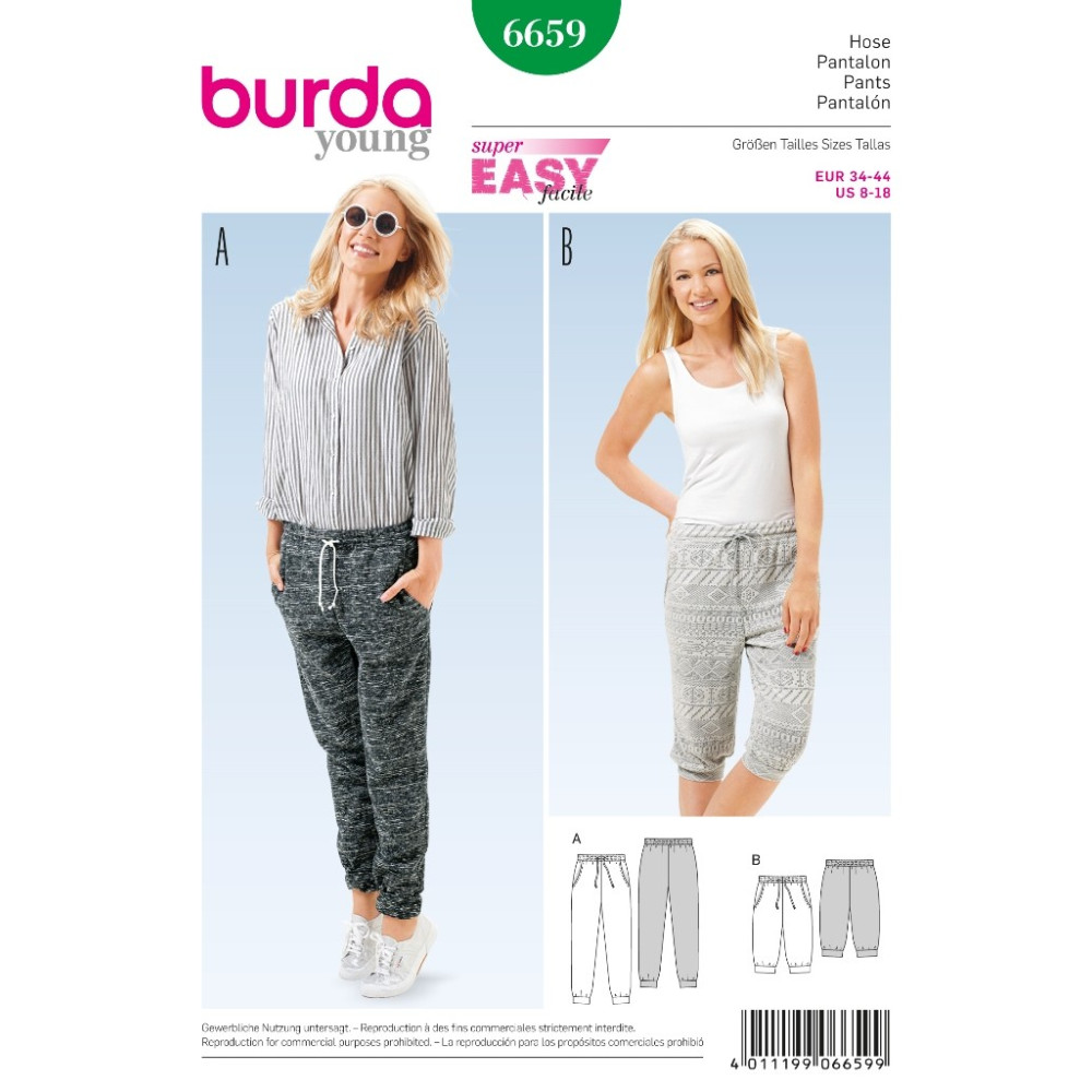 Střih Burda číslo 6659 teplákové kalhoty, tepláky