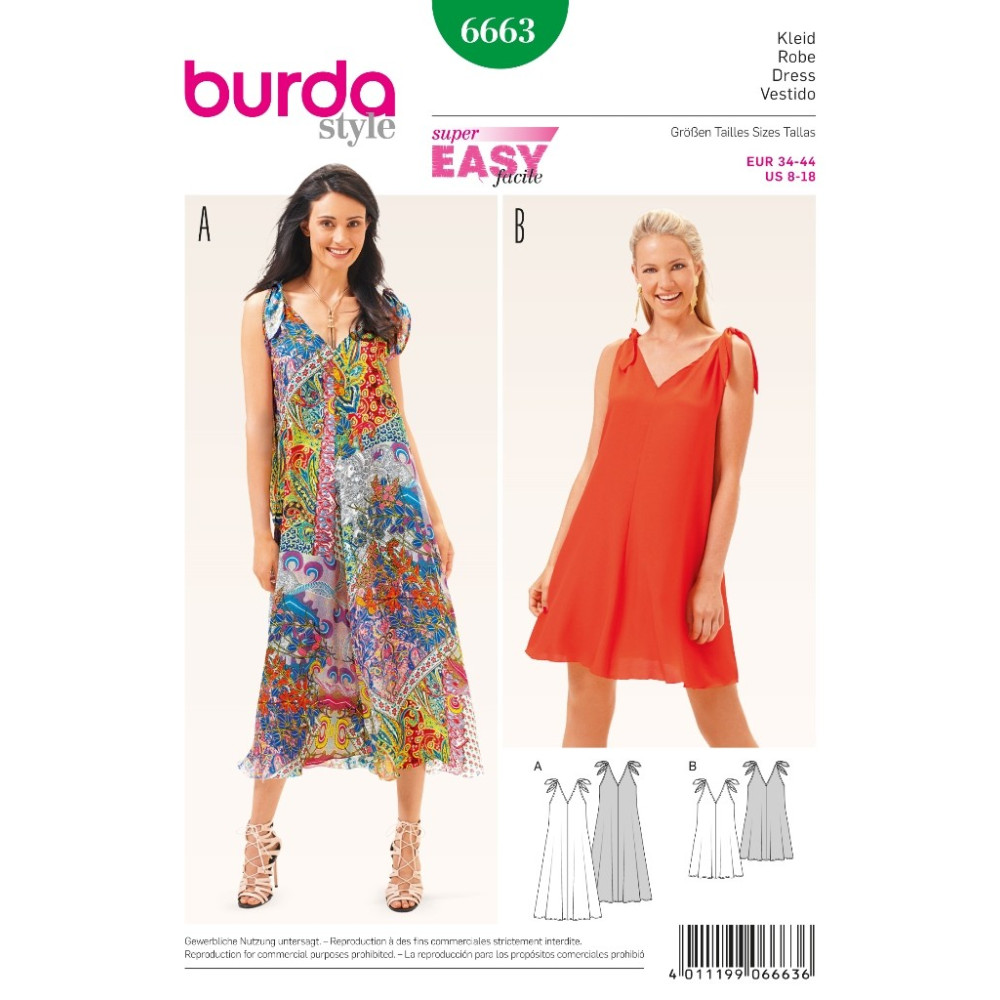 Střih Burda číslo 6663 jednoduché letní šaty
