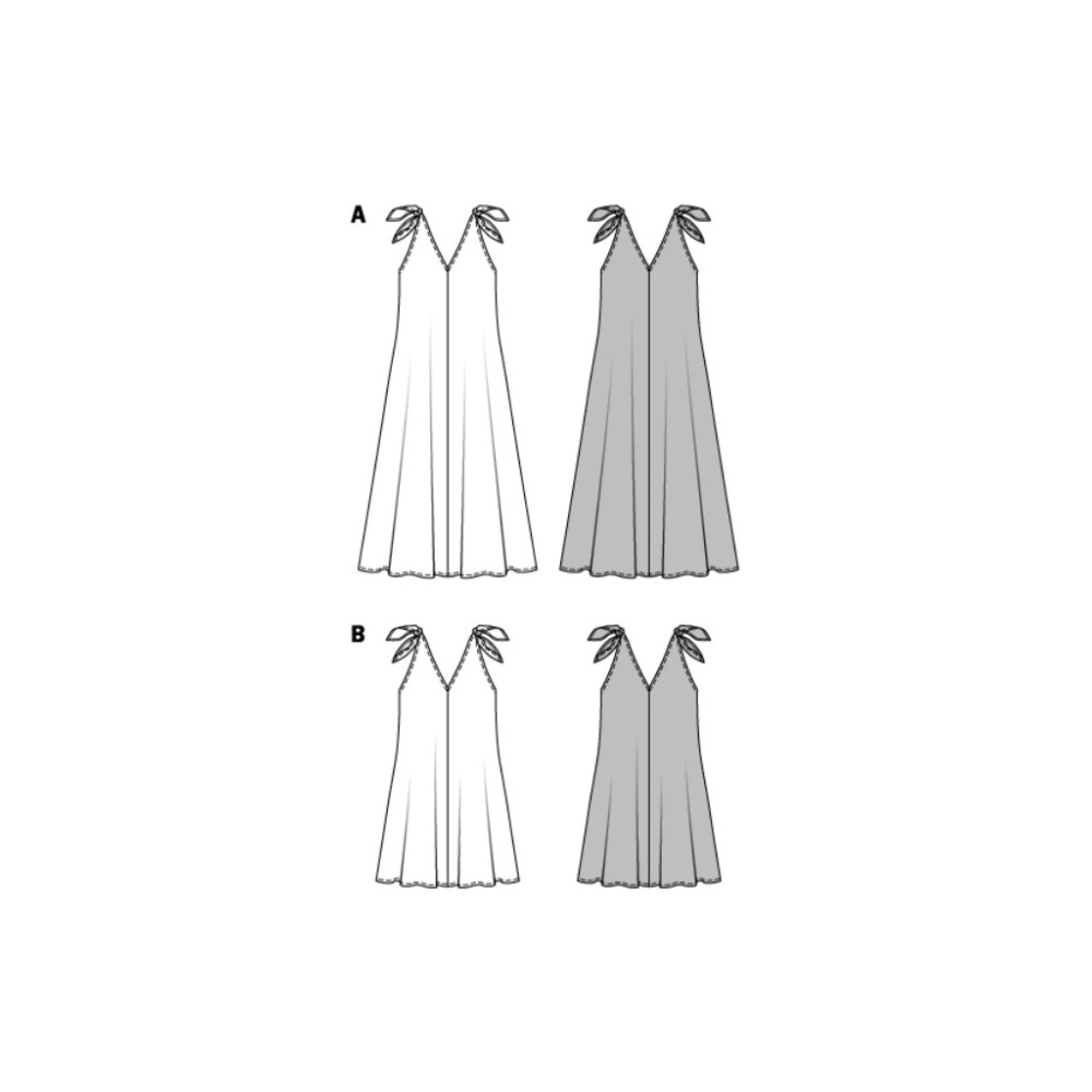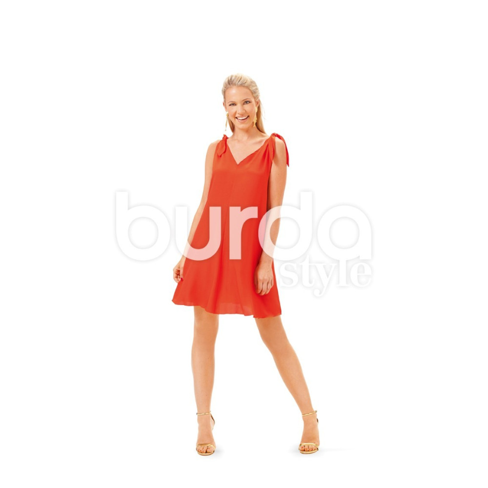 Střih Burda na jednoduché vzdušné letní šaty s V výstřihem a zavazováním na ramenou.