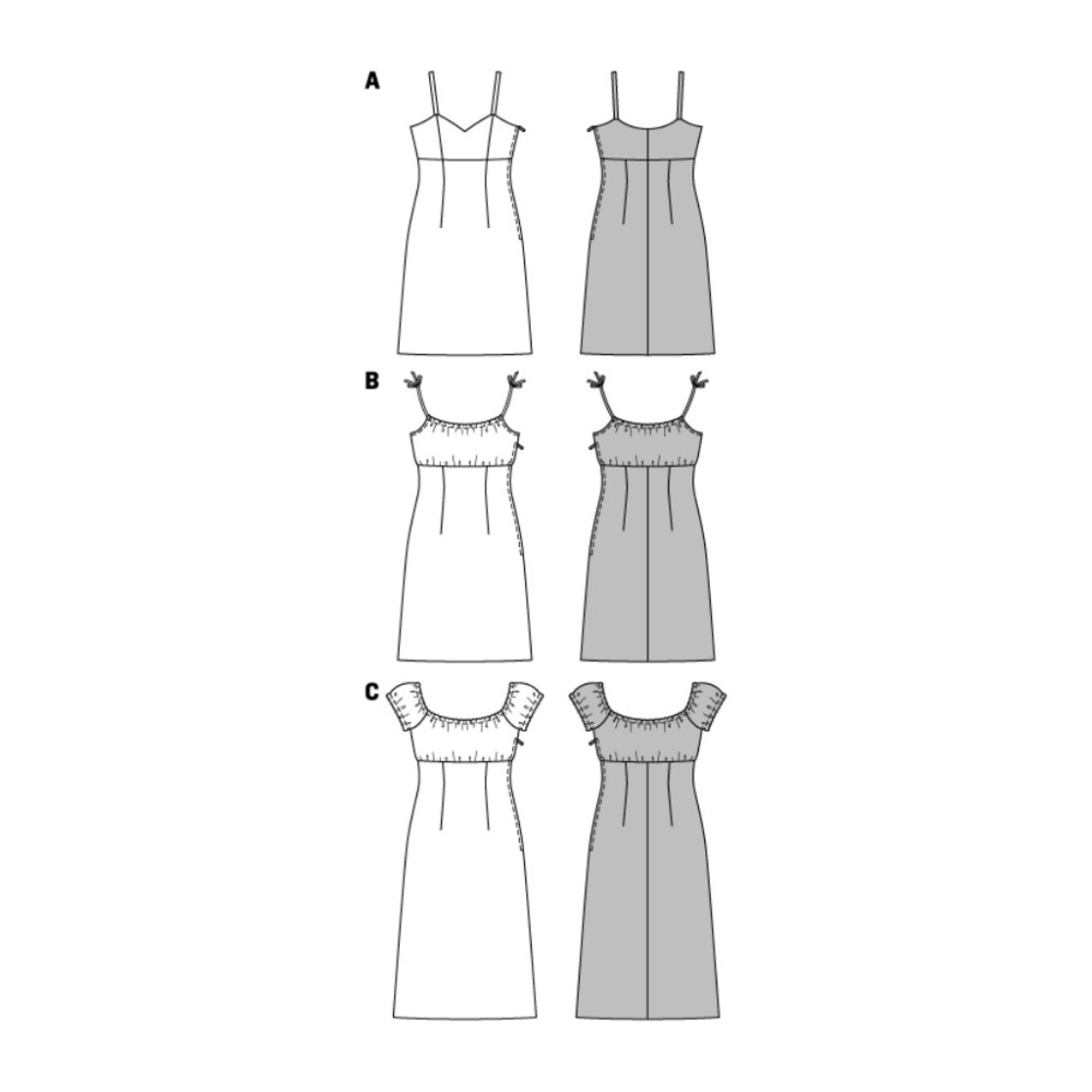 Střih Burda na šaty na ramínka a šaty Carmen s vysokým pasem v empírovém stylu.