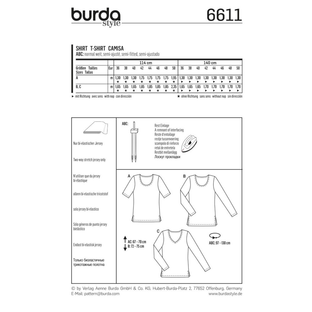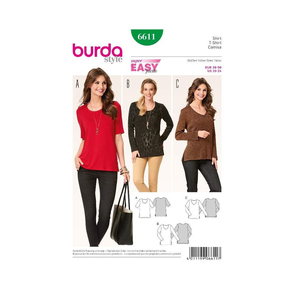 Střih Burda číslo 6611 jednoduché tričko, delší tričko