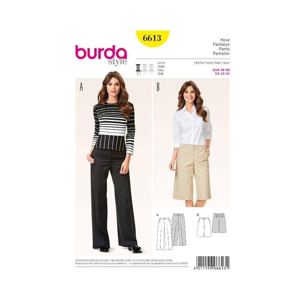 Střih Burda číslo 6613 kalhoty se širokými nohavicemi, bermudy