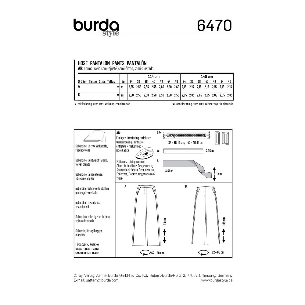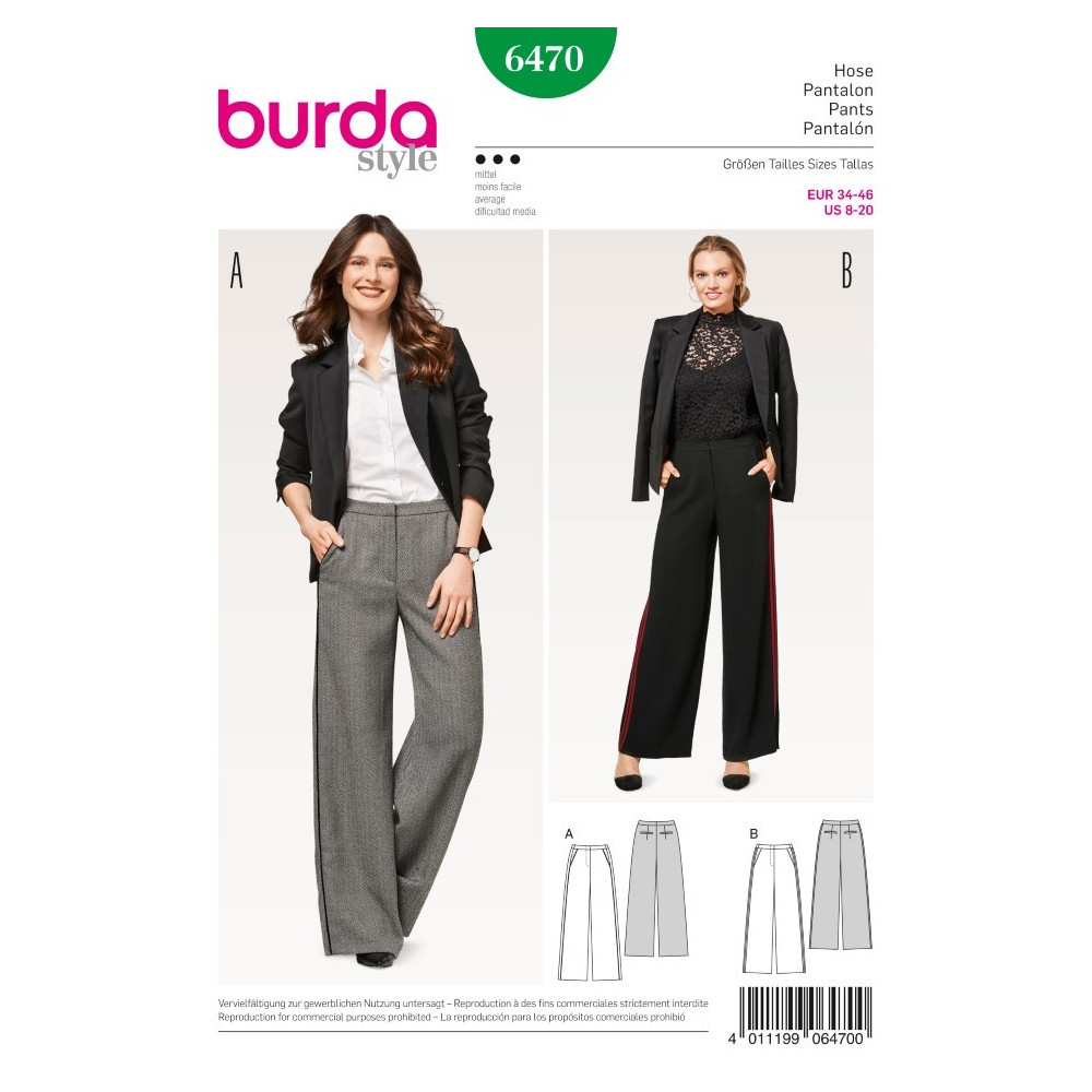 Střih Burda číslo 6470 kalhoty se širokými nohavicemi Marlene