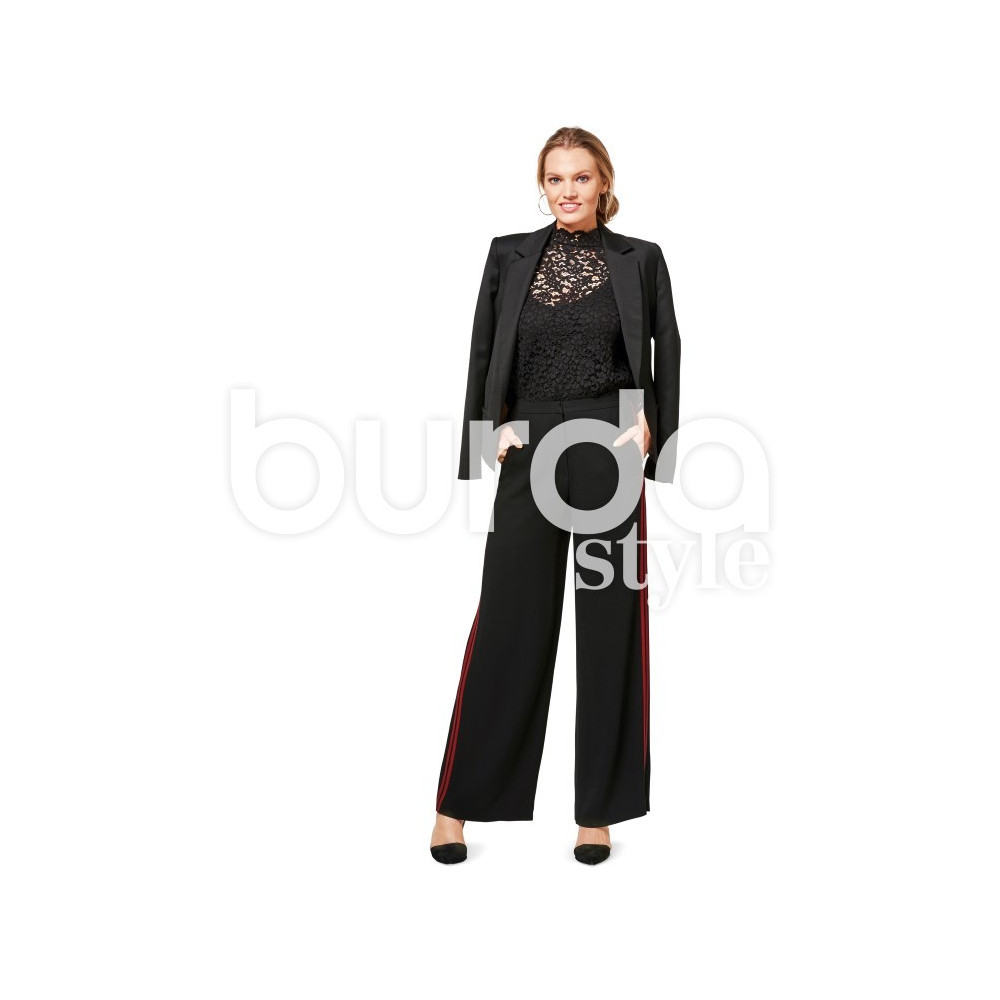 Střih Burda na kalhoty Marlene se širokými nohavicemi a bočními švy s paspulkami.