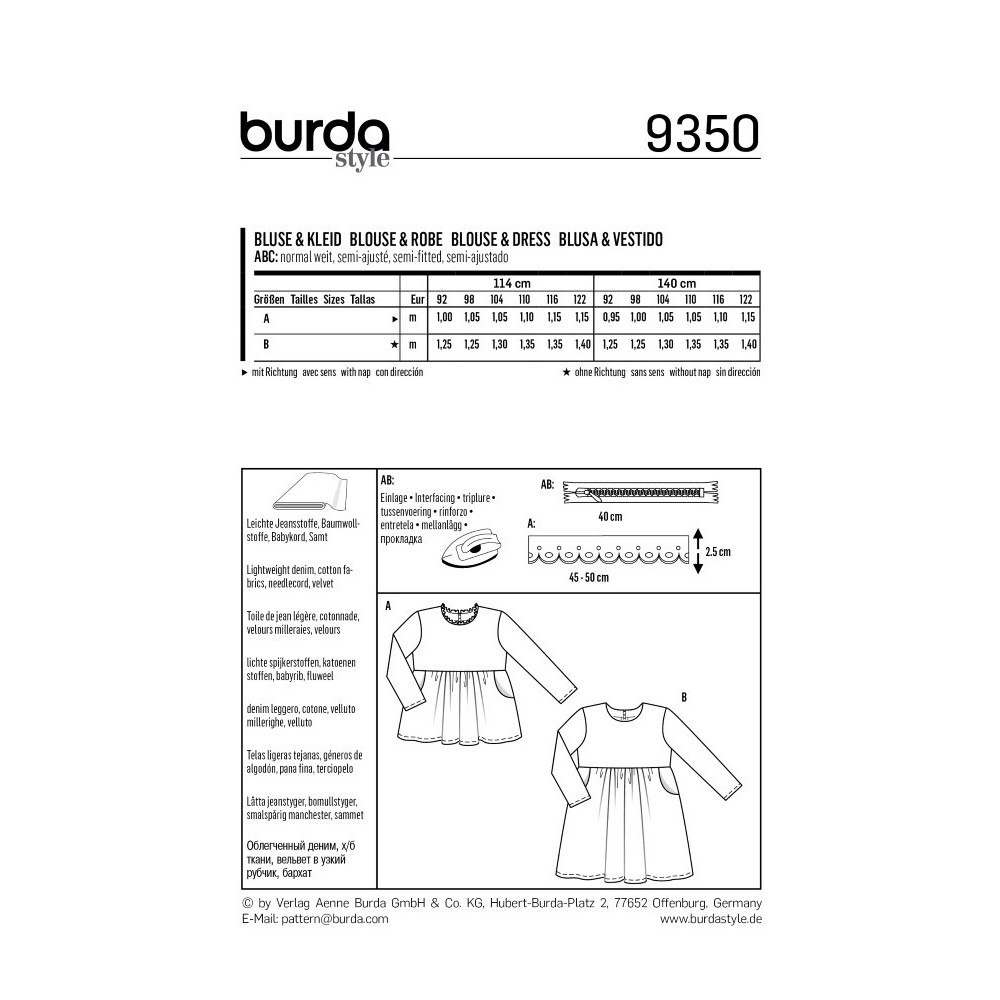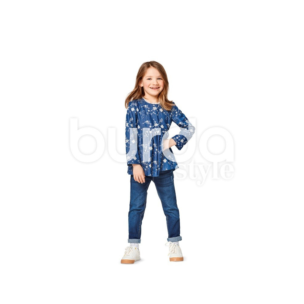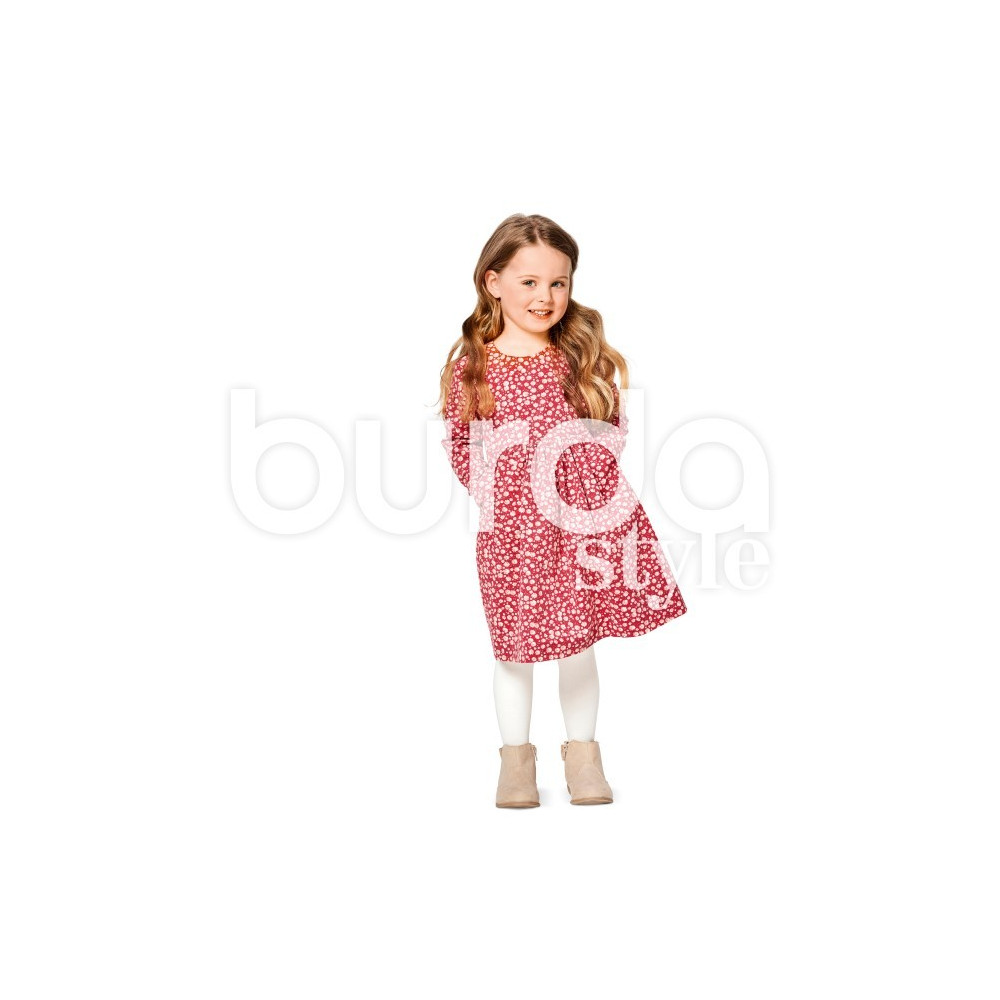 Dětský střih Burda na šaty a halenku s dlouhým rukávem, nabíranou sukní a kapsami