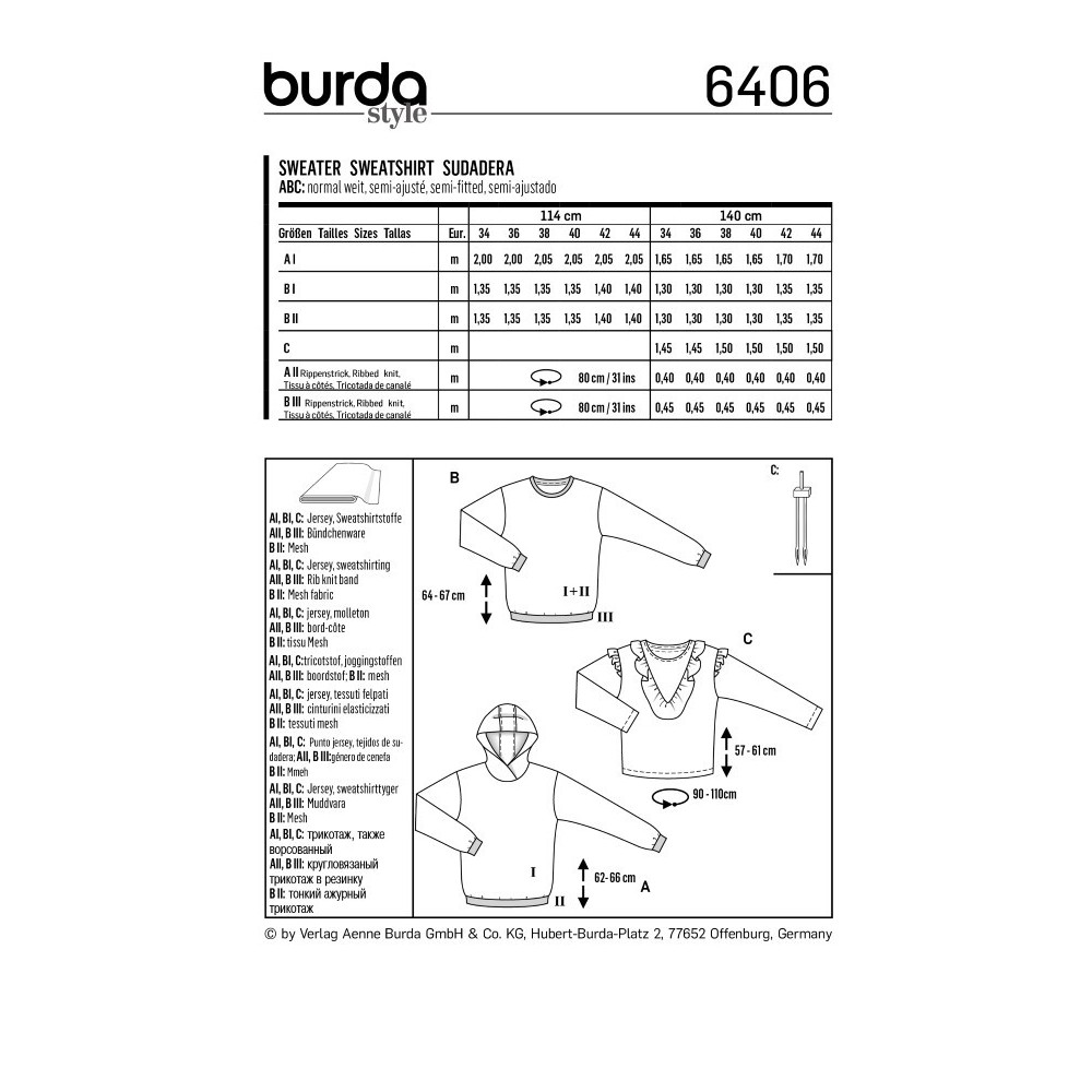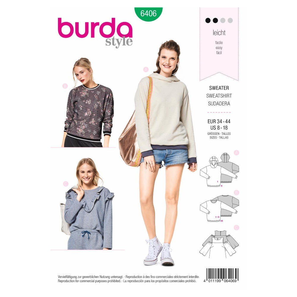 Střih Burda číslo 6406 mikina, mikina s kapucí