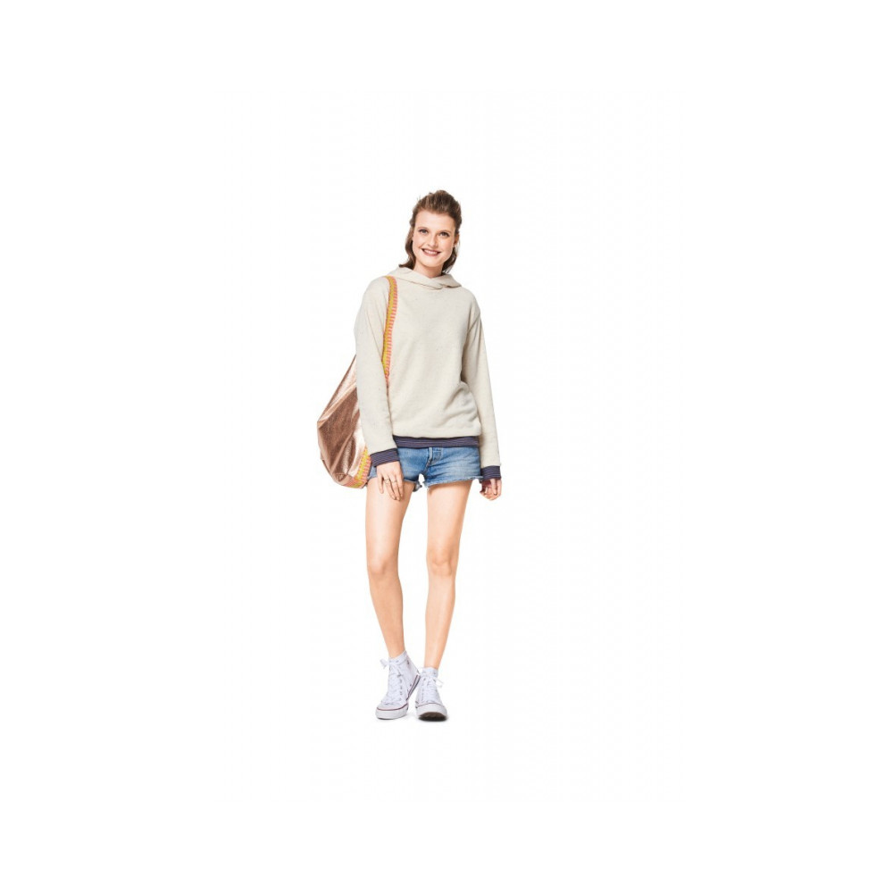 Střih ve velikostech EUR 34-44, úroveň obtížnosti šití: 2 (lehká), doporučené látky: žerzej, mikinovina / teplákovina