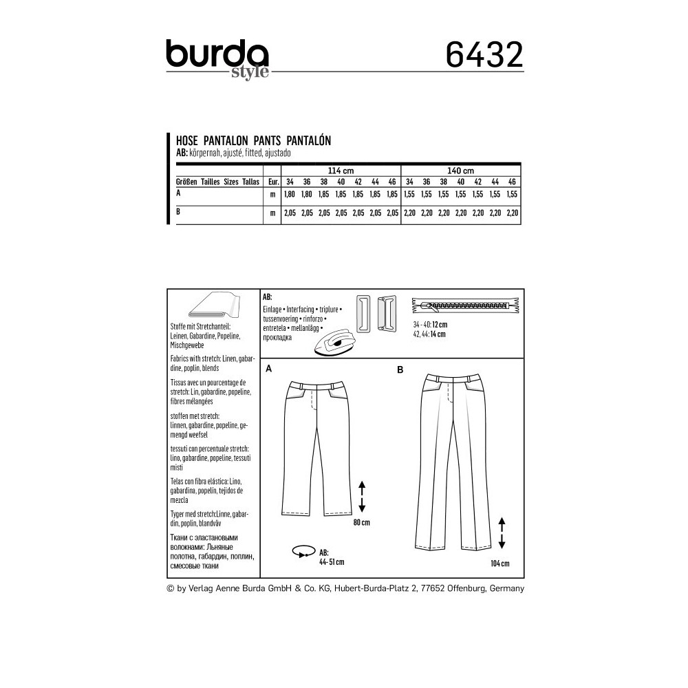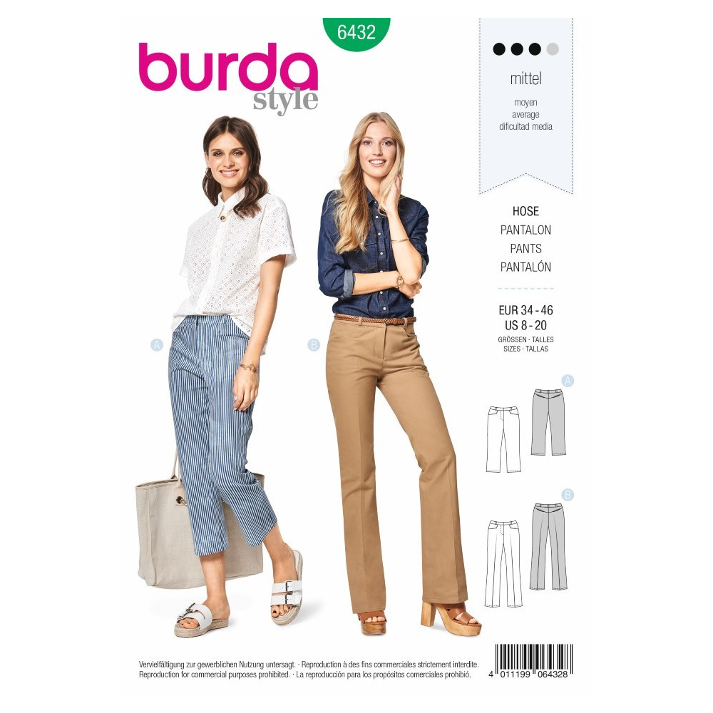 Střih Burda číslo 6432 tříčtvrteční kalhoty, rovné kalhoty s puky