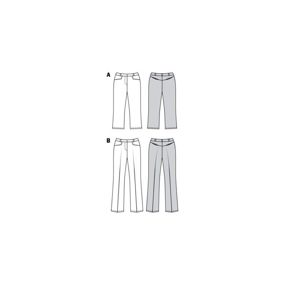 Střih Burda na tříčtvrteční kalhoty a rovné kalhoty se zažehlenými puky.