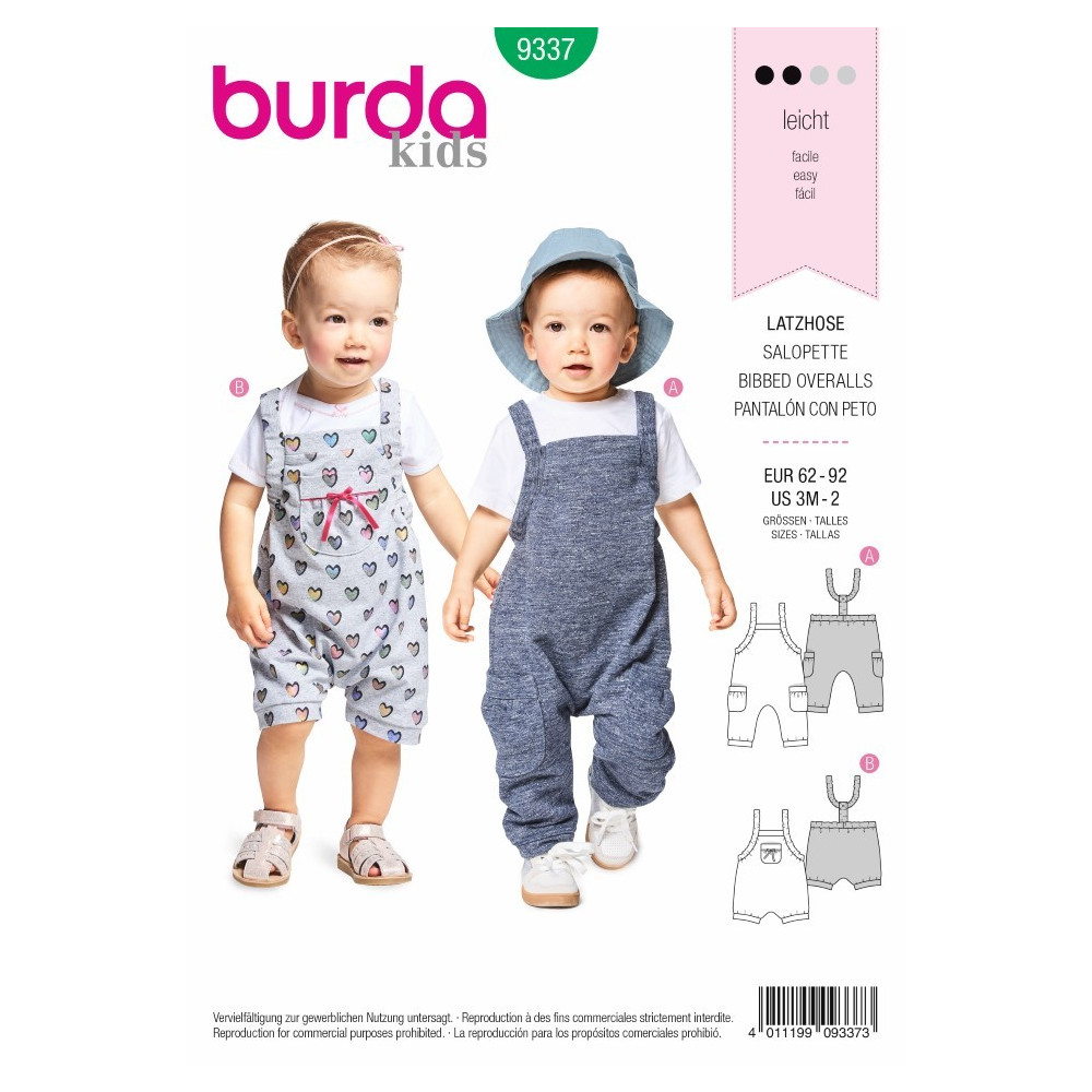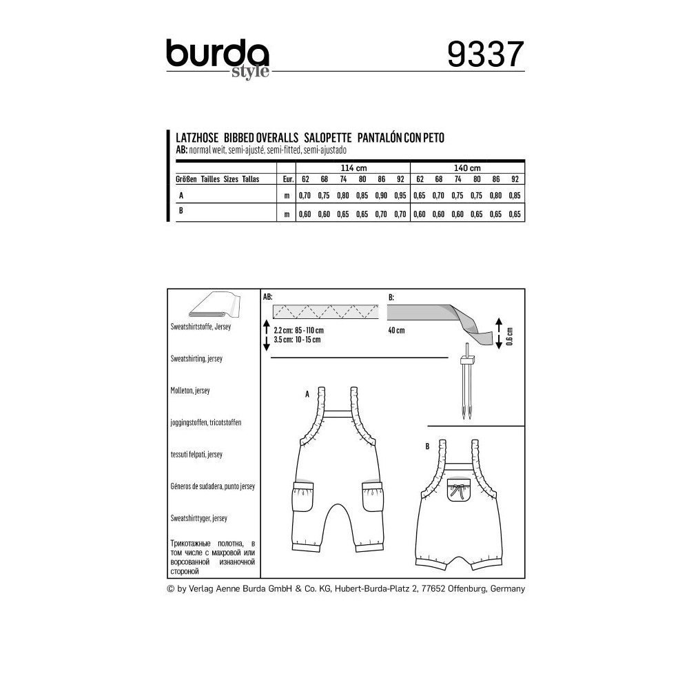 Střih Burda číslo 9337 dětské laclové kalhoty, lacláče