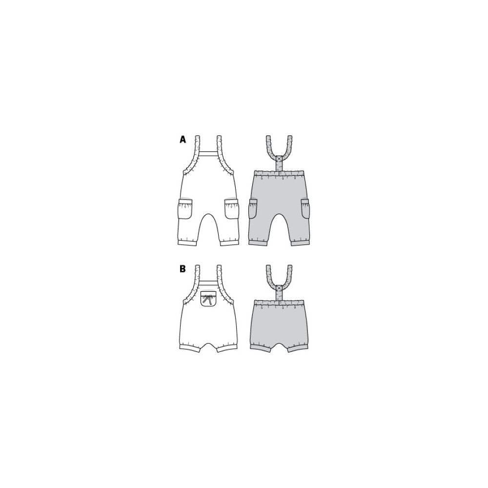 Dětský střih Burda na laclové kalhoty ve dvou délkách s pružnými ramínky a kapsami