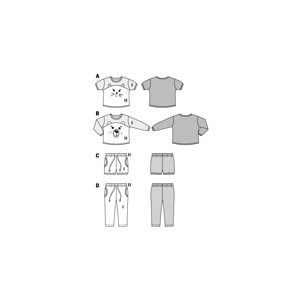 Střih ve velikostech EUR 86-122, úroveň obtížnosti šití: 2 (lehká), doporučené látky: pouze bi-elastický žerzej, lehčí teplákovina