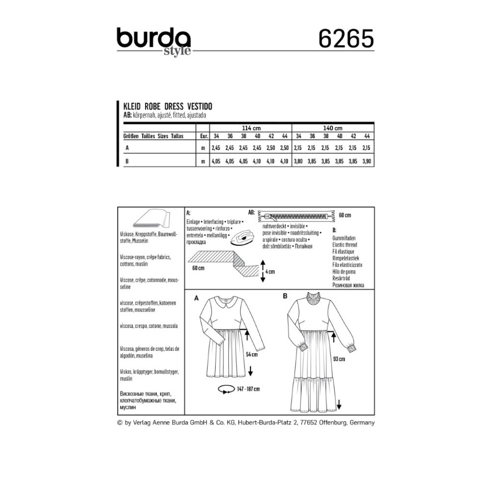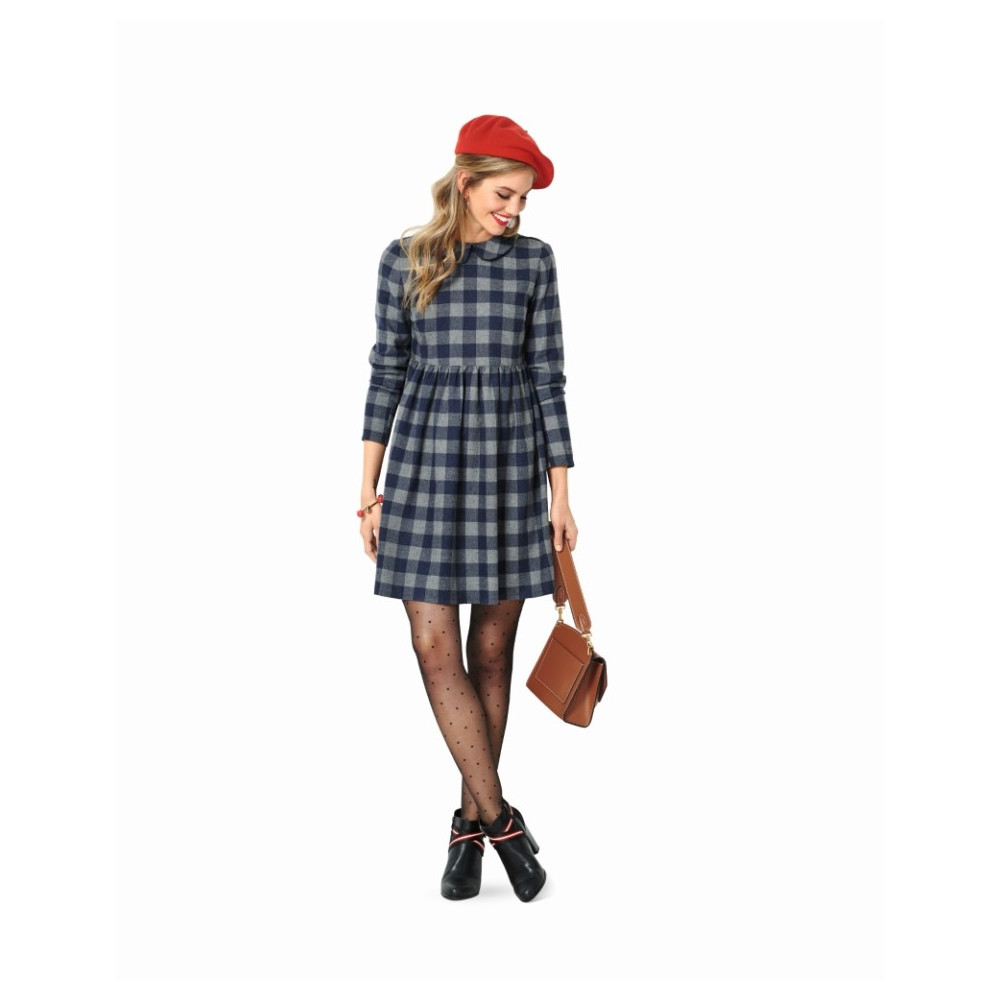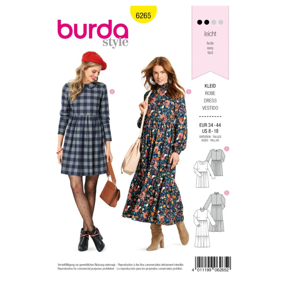 Střih Burda číslo 6265 šaty s límečkem, rolákové šaty, flanelové šaty